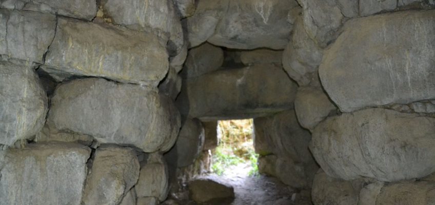 “…In un grande nuraghe, come quello in questione, il piano superiore con le possibili finestre era, probabilmente, la parte residenziale dell’edificio. La maggiore sicurezza del piano superiore rispecchia il carattere di fortezza della costruzione. Il piano terra era, verosimilmente, occupato da sentinelle, servi ed altri uomini. Lì, presumibilmente, vi erano anche ripostigli per le esigenze del nucleo abitativo e magazzini che potrebbero corrispondere alle tre camere a tholos, ognuna all’interno dei tre angoli a bastione dell’edificio. La camera sulla destra del cortile di ingresso è di eccezionale interesse. Situata al piano terra è di forma ovale…” (Il nuraghe Voes di Nule descritto dall’archeologo scozzese Duncan Mackenzie in un articolo pubblicato a Londra nel 1910 e riproposto nel libro “I Dolmen, le Tombe di Giganti e i Nuraghi della Sardegna” pubblicato da Condaghes nel 2012).