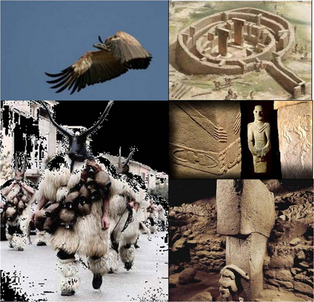 Questo è anche il caso di siti come Jerf el Ahmar in cui si trova un cerchio simile a quello di GT e glifi con scolpiti un avvoltoio, somigliante a quelli di Catal H., serpenti con testa a fungo come le teste dei serpenti e la dea di GT e come diverse dee egeo anatoliche sparse per il Mediterraneo (FIGURA 3).
