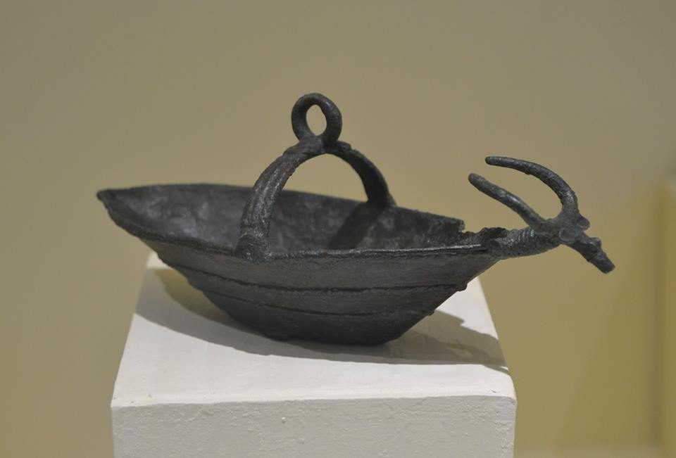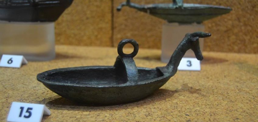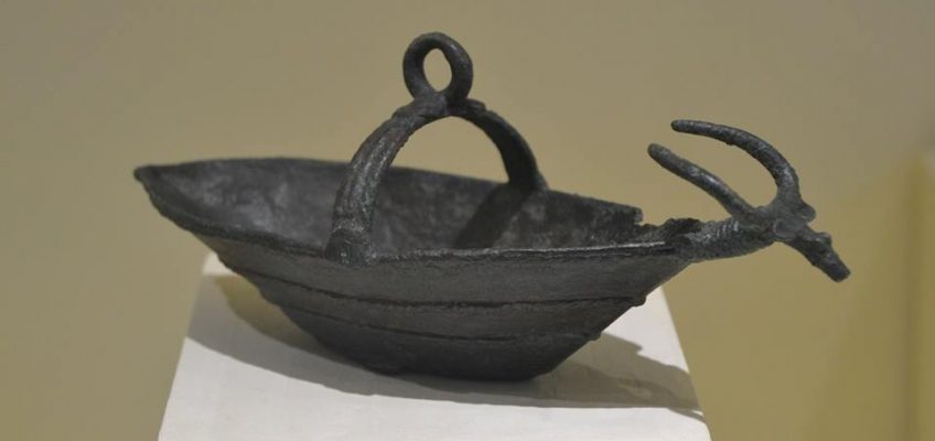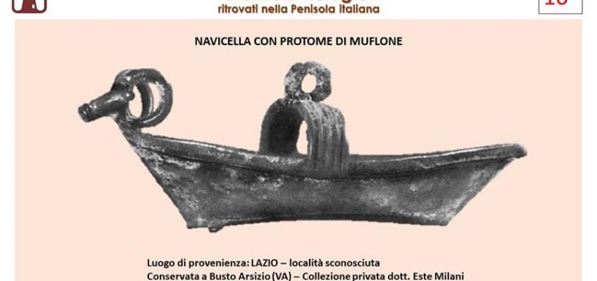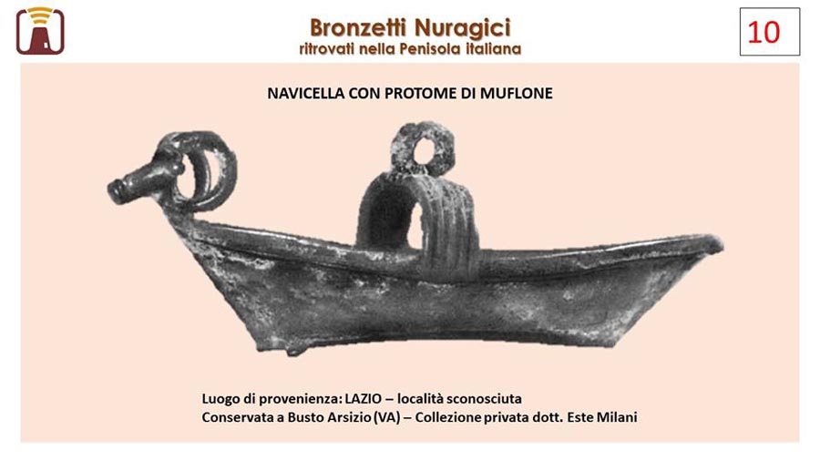 Foto 5–9: Bronzetto di nave con protome taurina e struttura a ponte con anello sommitale.