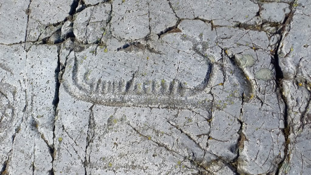 The rock carvings are from the Bronze Age (1,500 – 500 BC). You will find depictions of 25 ships and a handful of horsemen, animal figures, weapons, and foot prints