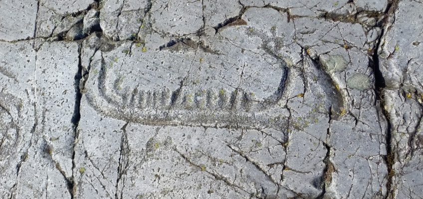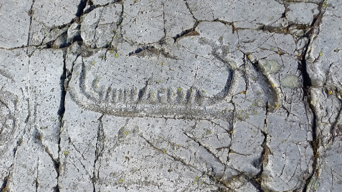 Foto 4: Petroglifo di nave con protome taurina e struttura a ponte con anello sommitale da Skåne.