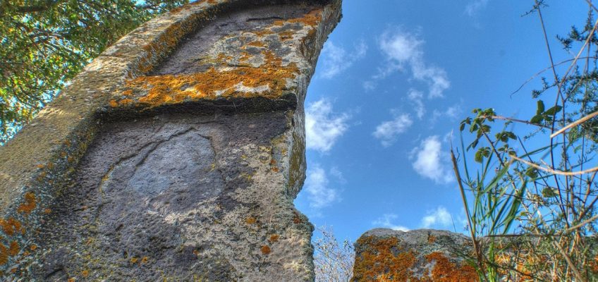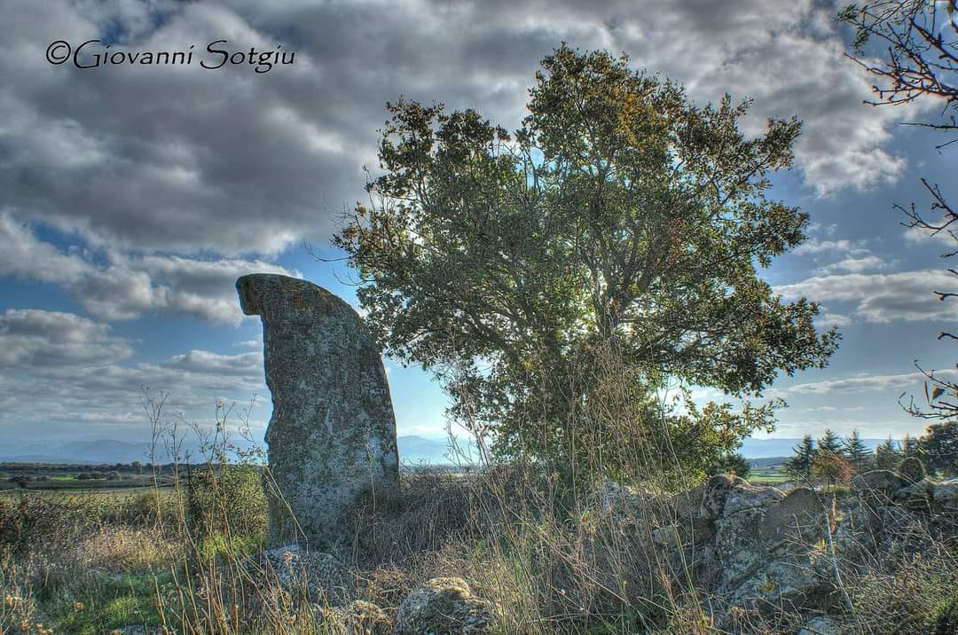 Illustrata dal Lamarmora e dal Mackenzie che l’avevano vista quasi intatta, almeno nel profilo di pianta e definita dal Pinza “il prospetto del più bel sepolcro di giganti che si conosce in Sardegna”, la tomba di giganti di Imbertighe, a Borore, è ormai ridotta alla sola stele centinata e alle ali dell’esedra costituite da tre file di pietre.