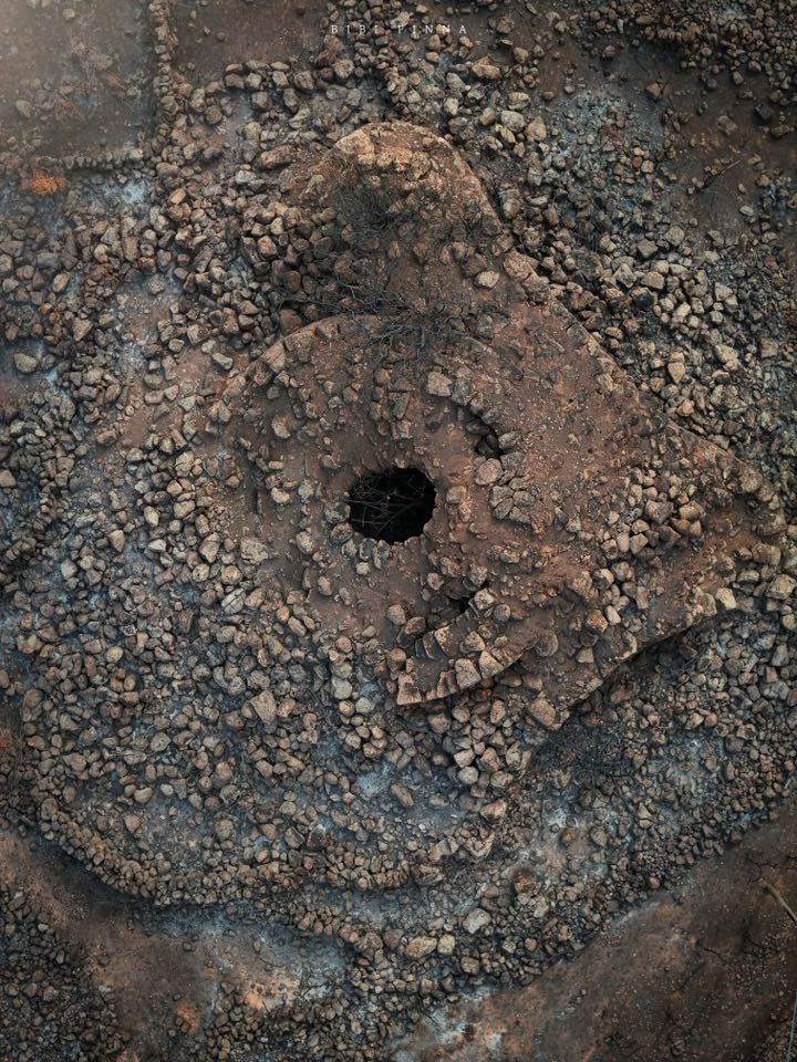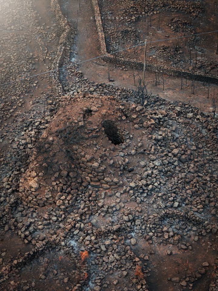 Lo scorso 7 agosto 2025 un vasto incendio ha colpito le campagne tra Macomer e Birori, creando notevoli disagi e danni. L’incendio ha coinvolto anche un nuraghe “quasi” totalmente invisibile da moltissimi anni, nascosto tra rovi ed arbusti a pochi passi dalla SS131. Come il mito dell’Araba Fenice anche il nuraghe Bidui è risorto dalle proprie ceneri, anche se in questo caso le fiamme sono opera dall’ignoranza dell’uomo moderno. In nuraghe Bidui è un meraviglioso nuraghe complesso composto da una torre principale e 3/4 torri secondarie. In base alla planimetria visibile dall’alto sembrerebbe un nuraghe quadrilobato. Ad oggi non risultano scavi scientifici, un vero peccato considerando la mole di questo gigante. (Bibi Pinna e Alessandra Cossu)