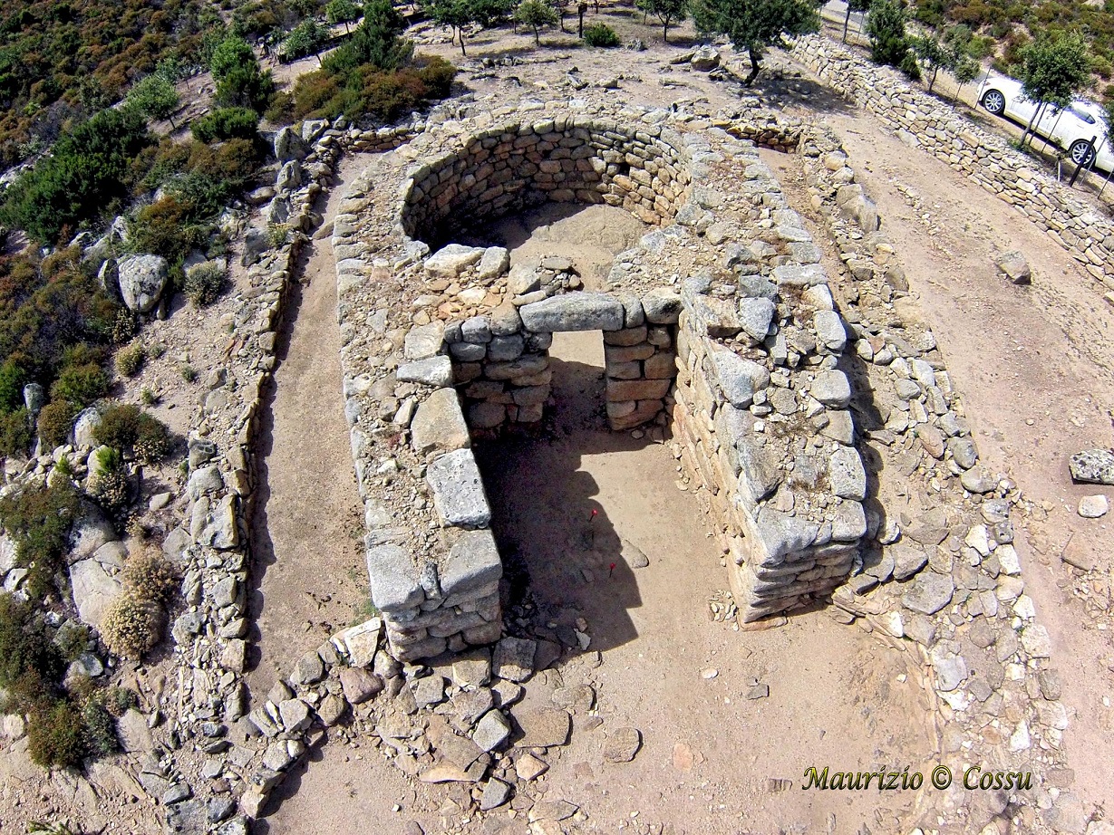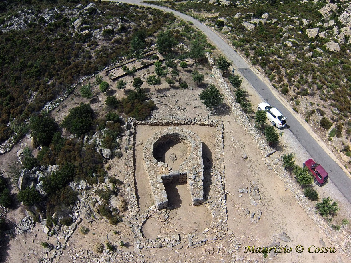 L’edificio sacro principale è articolato in due vani: un atrio a pianta sub-rettangolare (dotato originariamente di un bancone, oggi solo in parte conservato) probabilmente protetto in antico da un tetto a doppio spiovente ed una cella, accessibile dall’atrio stesso, a pianta circolare e verosimilmente in origine con copertura a tholos (falsa cupola). La cella presenta in posizione centrale i resti di un focolare caratterizzato da varie fasi di utilizzo e, a ridosso del paramento murario, un bancone-massicciata. I reperti di cultura materiale restituiti dal tempio (materiale ceramico d’impasto e frammenti di oggetti in bronzo) permettono di datare la struttura tra l’età del Bronzo Finale e gli inizi della prima età del Ferro (XII-1X sec. a.C.).