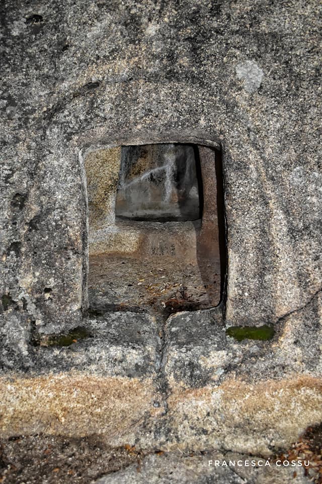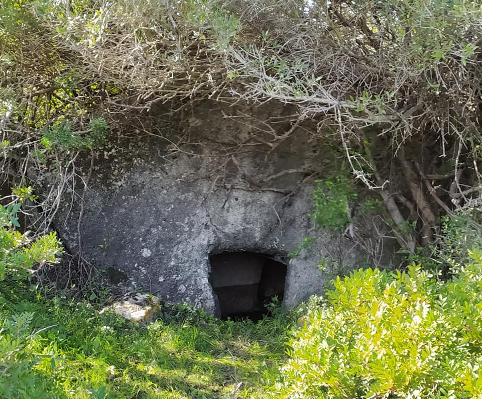 Gruppo di tre Domus de Janas di particolare suggestione. Con portello scolpito nella roccia basaltica ed esedra rettangolare sotto il livello del terreno