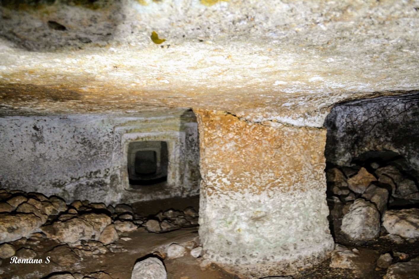 Si entra in quel pertugio, lo spazio è poco, il soffitto è basso a causa di tutta quella terra millenaria e si prosegue avanzando con i gomiti, lentamente. Si compone di almeno 12 ipogei, scavata nel calcare è dotata di svariate decorazioni e di protomi taurine. Queste sono domus che emozionano, perchè la loro bellezza è in tutto ciò che custodiscono. Poi, nel buio, un raggio di luce illumina un maestoso decoro a triplice cornice di un portello ancora quasi del tutto interrato.