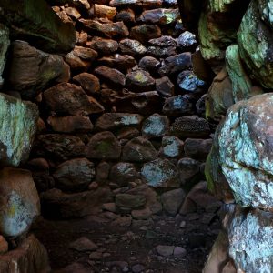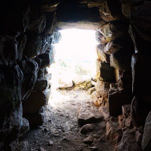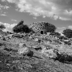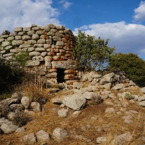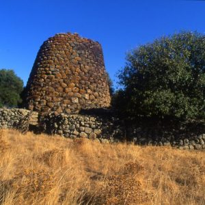 “Il paesaggio sardo colpisce a prima vista per la pleiade di volumi fisici rotondi che si succedono in continuità insistenti, martellanti tanto da fissarsi nell’occhio e nella mente dei visitatori come elemento assolutamente caratteristico di una terra e di una civiltà straordinarie, dall’apparenza mitica, come una sorta di simbolo e di bandiera d’un popolo. Questi volumi rotondi sono i volumi dei nuraghi. E i nuraghi significano fascino di Sardegna, oltre la natura vergine e sconfinata, oltre il mare” Così scriveva il grande archeologo sardo Giovanni Lilliu nel suo libro titolato “Sardegna Nuragica”. Il nuraghe, nella sua forma più semplice, è costituito da una torre troncoconica con vani circolari sovrapposti e coperti da falsa volta (tholos) ottenuta con l’aggetto delle pietre delle pareti. I vani sono raccordati tra loro, nella forma più evoluta, da una scala elicoidale che corre nello spessore murario. La forma più complessa è costituita da una serie di torri (da una a cinque) che si dispongono attorno ad una torre semplice (mastio), unite tra loro da murature rettilinee o concavo-convesse (cortine). Attualmente il numero dei nuraghi è superiore ai settemila, ma è probabile che la loro iniziale consistenza sia stata molto maggiore. Ciò in quanto un gran numero di essi è ancora celato sotto terra, mentre tantissimi altri sono stati smantellati per esigenze di spietramento di terreni agricoli, per realizzare muretti a secco o opere edilizie di vario genere, o addirittura utilizzati come fondamenta di strutture civili e religiose. Si può affermare che i nuraghi evoluti – la cui edificazione è presumibilmente compresa tra la metà del Bronzo Medio (1600 a.C. circa) e l’inizio dell’Età del Ferro (900 a.C. circa)-, rappresentino l’evoluzione o a volte la trasformazione di una precedente struttura generalmente denominata “protonuraghe” o “nuraghe a corridoio” o “pseudonuraghe” o “nuraghe arcaico”.