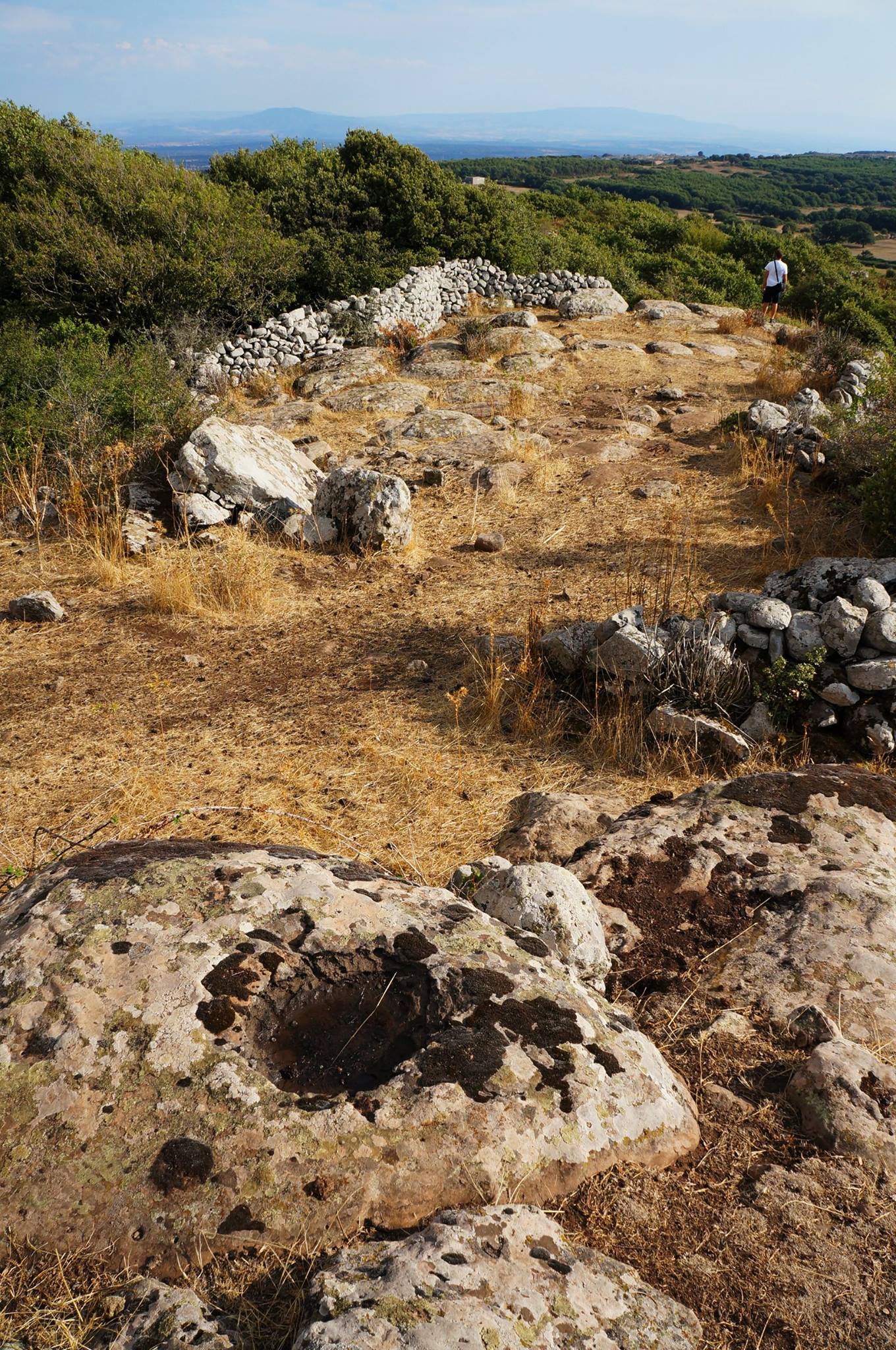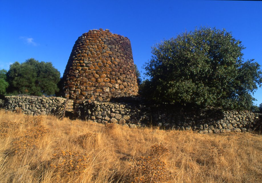 “Il paesaggio sardo colpisce a prima vista per la pleiade di volumi fisici rotondi che si succedono in continuità insistenti, martellanti tanto da fissarsi nell’occhio e nella mente dei visitatori come elemento assolutamente caratteristico di una terra e di una civiltà straordinarie, dall’apparenza mitica, come una sorta di simbolo e di bandiera d’un popolo. Questi volumi rotondi sono i volumi dei nuraghi. E i nuraghi significano fascino di Sardegna, oltre la natura vergine e sconfinata, oltre il mare” Così scriveva il grande archeologo sardo Giovanni Lilliu nel suo libro titolato “Sardegna Nuragica”. Il nuraghe, nella sua forma più semplice, è costituito da una torre troncoconica con vani circolari sovrapposti e coperti da falsa volta (tholos) ottenuta con l’aggetto delle pietre delle pareti. I vani sono raccordati tra loro, nella forma più evoluta, da una scala elicoidale che corre nello spessore murario. La forma più complessa è costituita da una serie di torri (da una a cinque) che si dispongono attorno ad una torre semplice (mastio), unite tra loro da murature rettilinee o concavo-convesse (cortine). Attualmente il numero dei nuraghi è superiore ai settemila, ma è probabile che la loro iniziale consistenza sia stata molto maggiore. Ciò in quanto un gran numero di essi è ancora celato sotto terra, mentre tantissimi altri sono stati smantellati per esigenze di spietramento di terreni agricoli, per realizzare muretti a secco o opere edilizie di vario genere, o addirittura utilizzati come fondamenta di strutture civili e religiose. Si può affermare che i nuraghi evoluti – la cui edificazione è presumibilmente compresa tra la metà del Bronzo Medio (1600 a.C. circa) e l’inizio dell’Età del Ferro (900 a.C. circa)-, rappresentino l’evoluzione o a volte la trasformazione di una precedente struttura generalmente denominata “protonuraghe” o “nuraghe a corridoio” o “pseudonuraghe” o “nuraghe arcaico”.