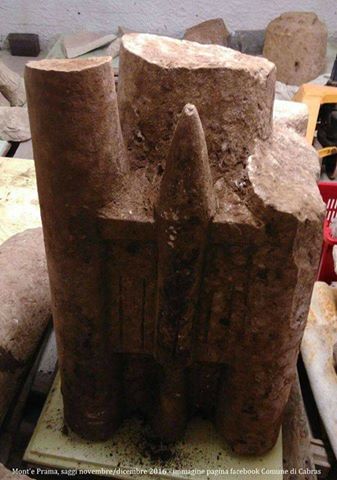 Stato di conservazione: la parte superiore del corno sinistro è stato aggiunto recentemente. Il muso della protome, i pali del parapetto e l’albero sono deformati. Patina verde ruvida granulosa con efflorescenza.