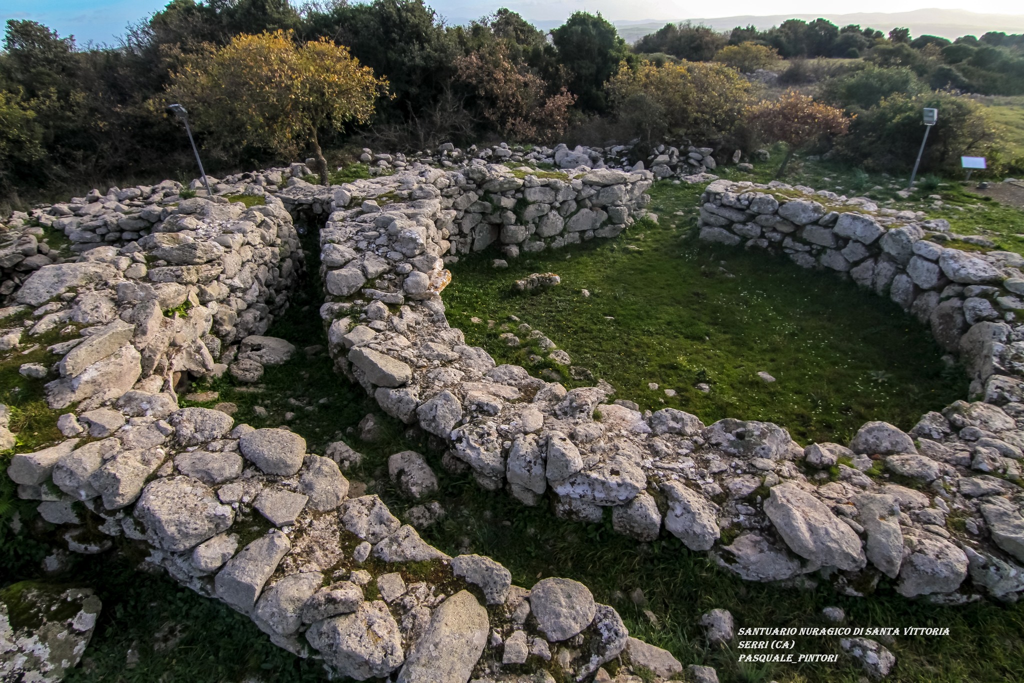 Santa Vittoria costituisce uno dei più importanti complessi cultuali della Sardegna nuragica. Esteso per più di 3 ettari, è difeso a S/S-O dal dirupo naturale e a N-O da una muraglia che segue il margine roccioso. ; Il santuario presenta quattro gruppi principali di edifici: i due templi e la “capanna del sacerdote”, il “recinto delle feste”, il gruppo del recinto del “doppio betilo” e il gruppo est-sud-est
