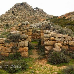 La torre principale risale alla prima fase (XV-XIV secolo a.C.) e conserva la camera centrale coperta a tholos e realizzata con pietre in calcare. La torre è di tipo arcaico, con ingresso privo di anditi laterali e nicchie appena accennate nelle pareti della camera principale. Dovevano essere presenti anche alcune capanne all'esterno del nuraghe.[1].