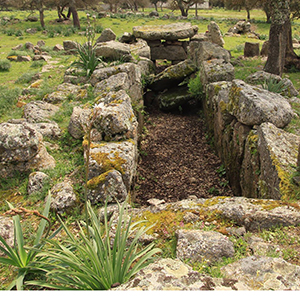 Sepoltura nuragica costruita in granito di cui restano solo i filari di pietre a formare il basamento del corridoio. Posta a Nord, a valle dell’omonimo complesso Nuragico e subito alle spalle della Saras è purtroppo abbandonata ed in pessimo stato di conservazione, nonostante la sua facile accessibilità.
