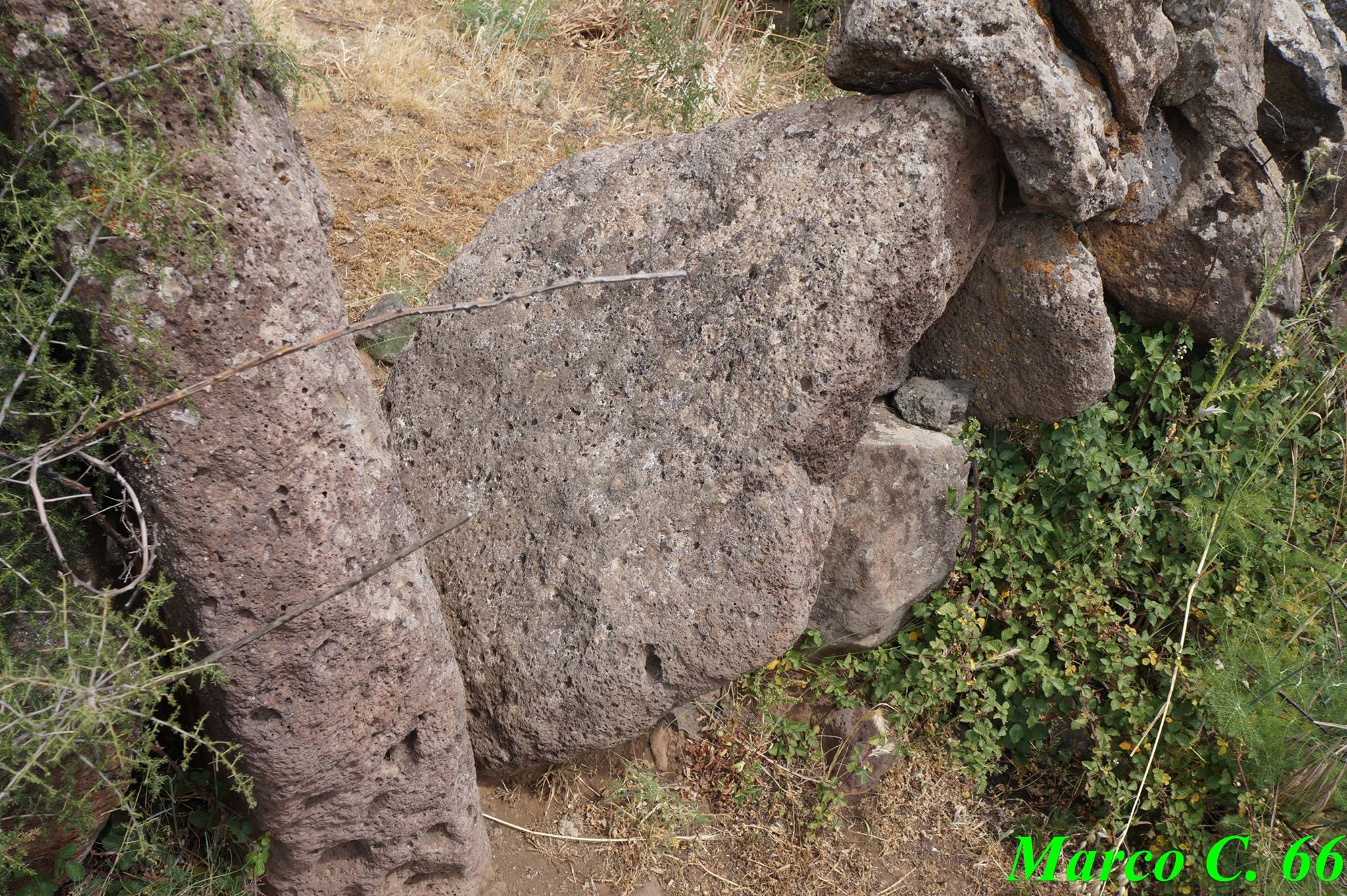 Delle due tombe di giganti, entrambe relativamente diroccate, si riconoscono la camera funeraria e l’esedra.