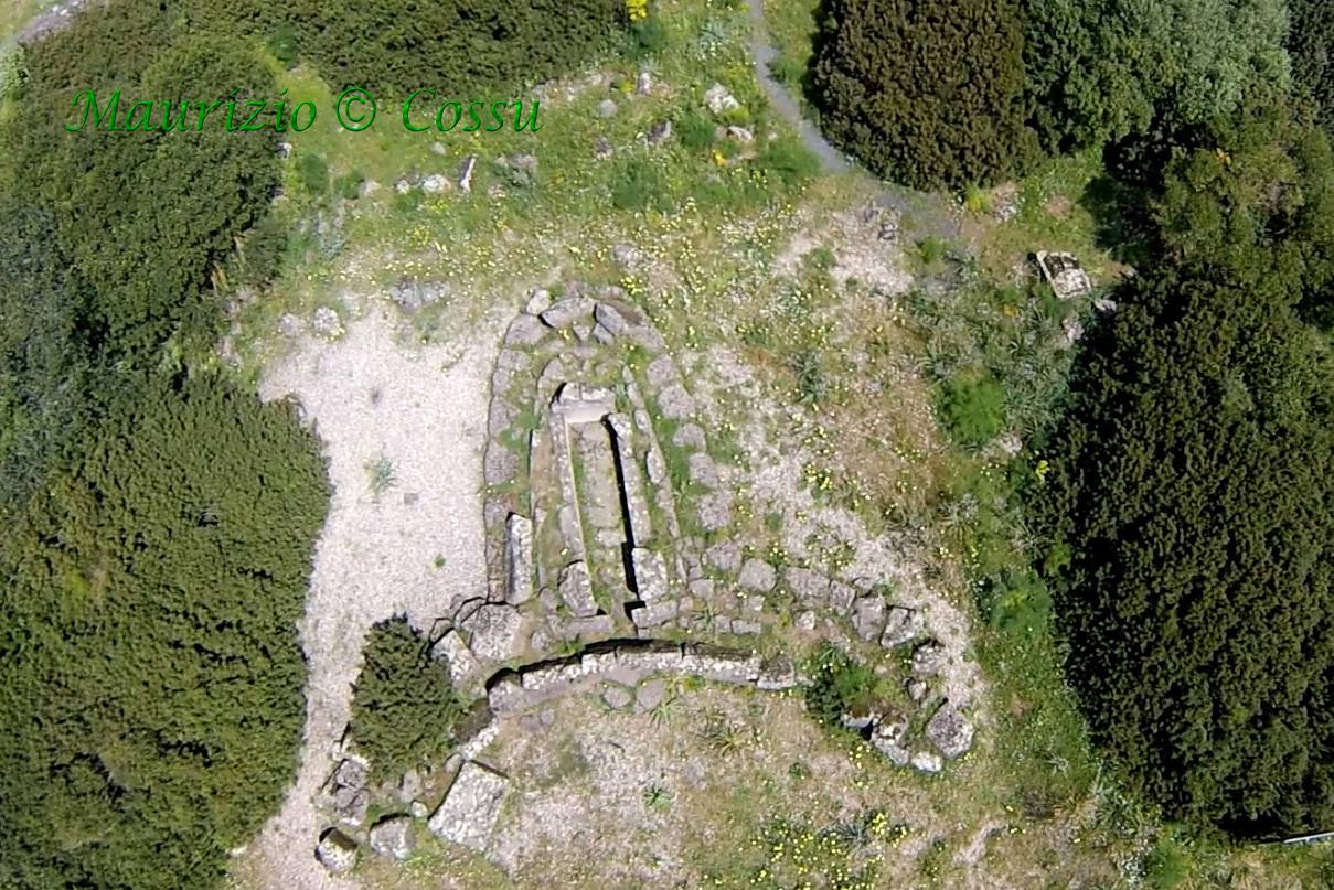 La costruzione è unica, in quanto incarna anche degli elementi tipici dell’ambito ipogeico. Si tratta di una domus de janas riutilzzata in epoca nuragica, dove venne realizzata la stele e il corridoio. Rappresenta una peculiare tomba a prospetto architettonico.