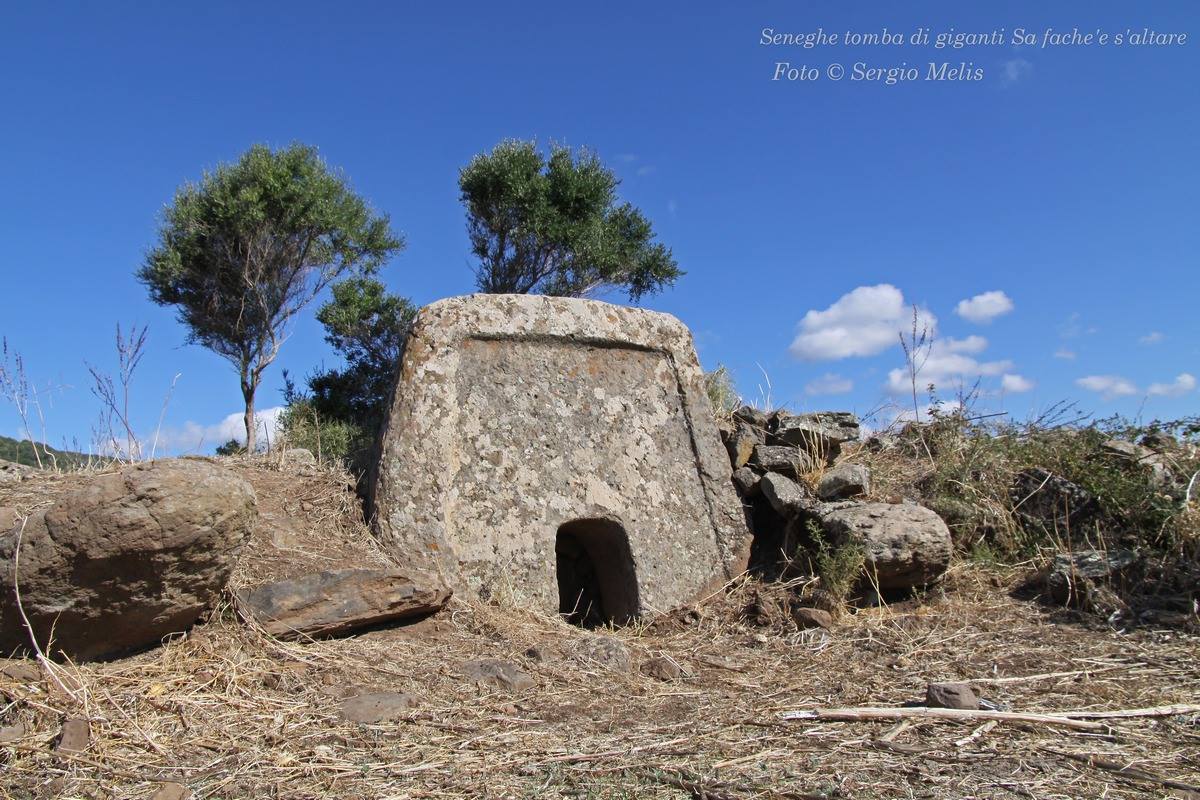 La tomba di giganti Sa Fache e s”Altare è una sepoltura a corridoio con stele centinata, forse bilitica