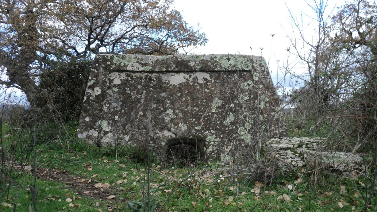 La tomba si trova in ottimo stato di conservazione, sia internamente che esternamente, la facciata costruita con blocchi di medie dimensioni ben squadrati e disposti in modo accurato, presenta al centro il basso portello d’accesso rettangolare (circa 50 cm. di larghezza e 60 di altezza). La camera funeraria, che raggiunge nel punto più alto circa 1,80 m di altezza, molto ben conservato anche l’abside che chiude posteriormente la camera.
