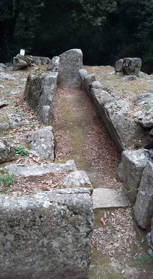 Del monumento, del tipo a filari in blocchi poligonali di granito, è visibile il corridoio e in parte il profilo esterno del corpo tombale.