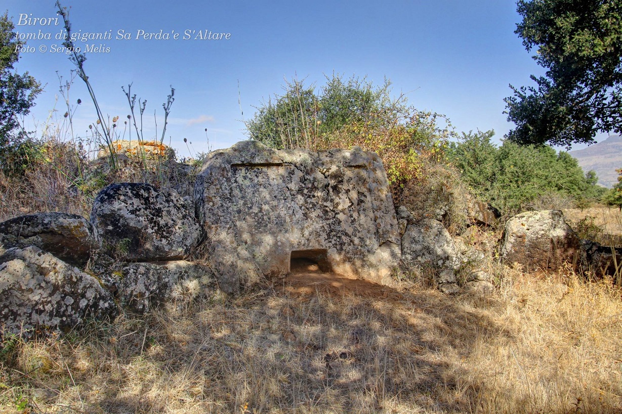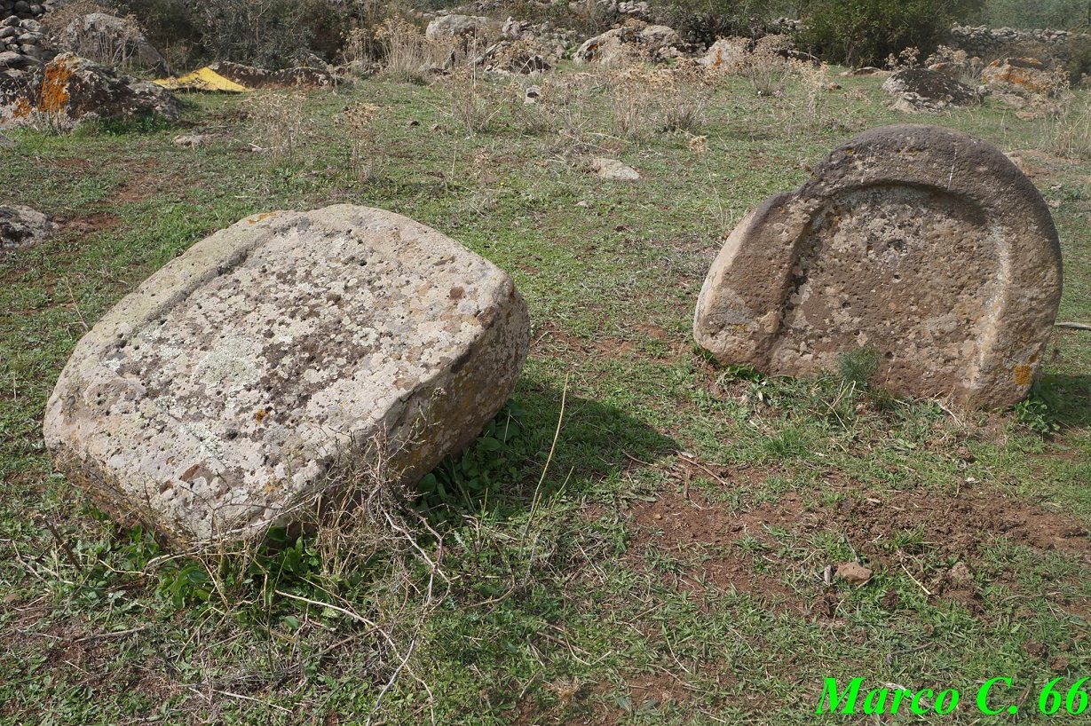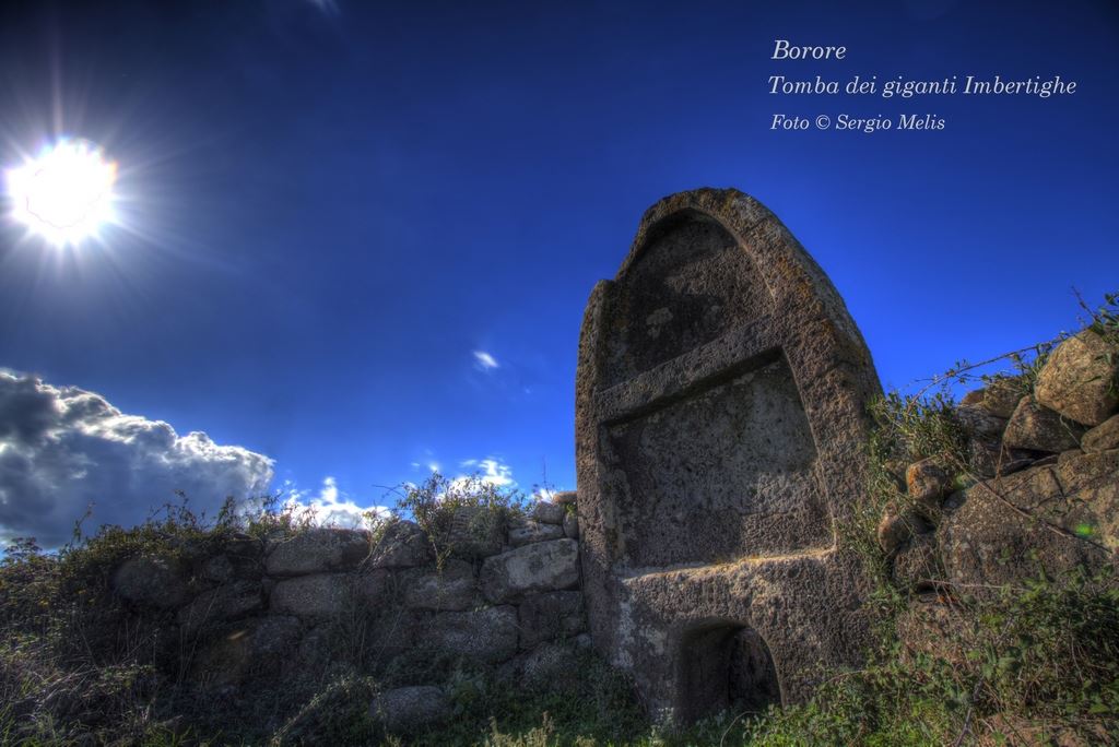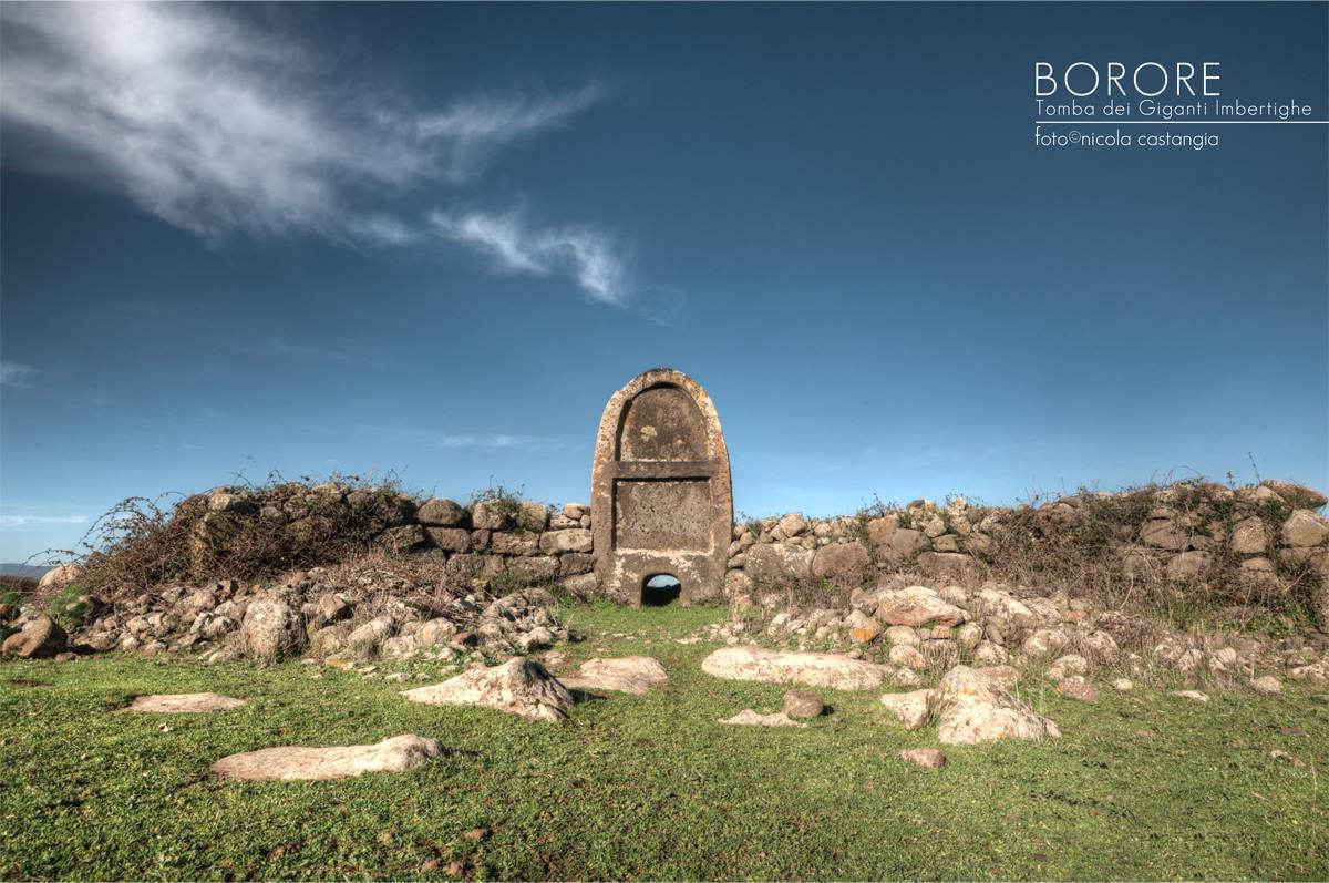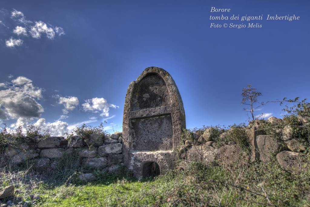 Illustrata dal Lamarmora e dal Mackenzie che l’avevano vista quasi intatta, almeno nel profilo di pianta e definita dal Pinza “il prospetto del più bel sepolcro di giganti che si conosce in Sardegna”, la tomba di giganti di Imbertighe è ormai ridotta alla sola stele centinata e alle ali dell’esedra costituite da tre file di pietre.