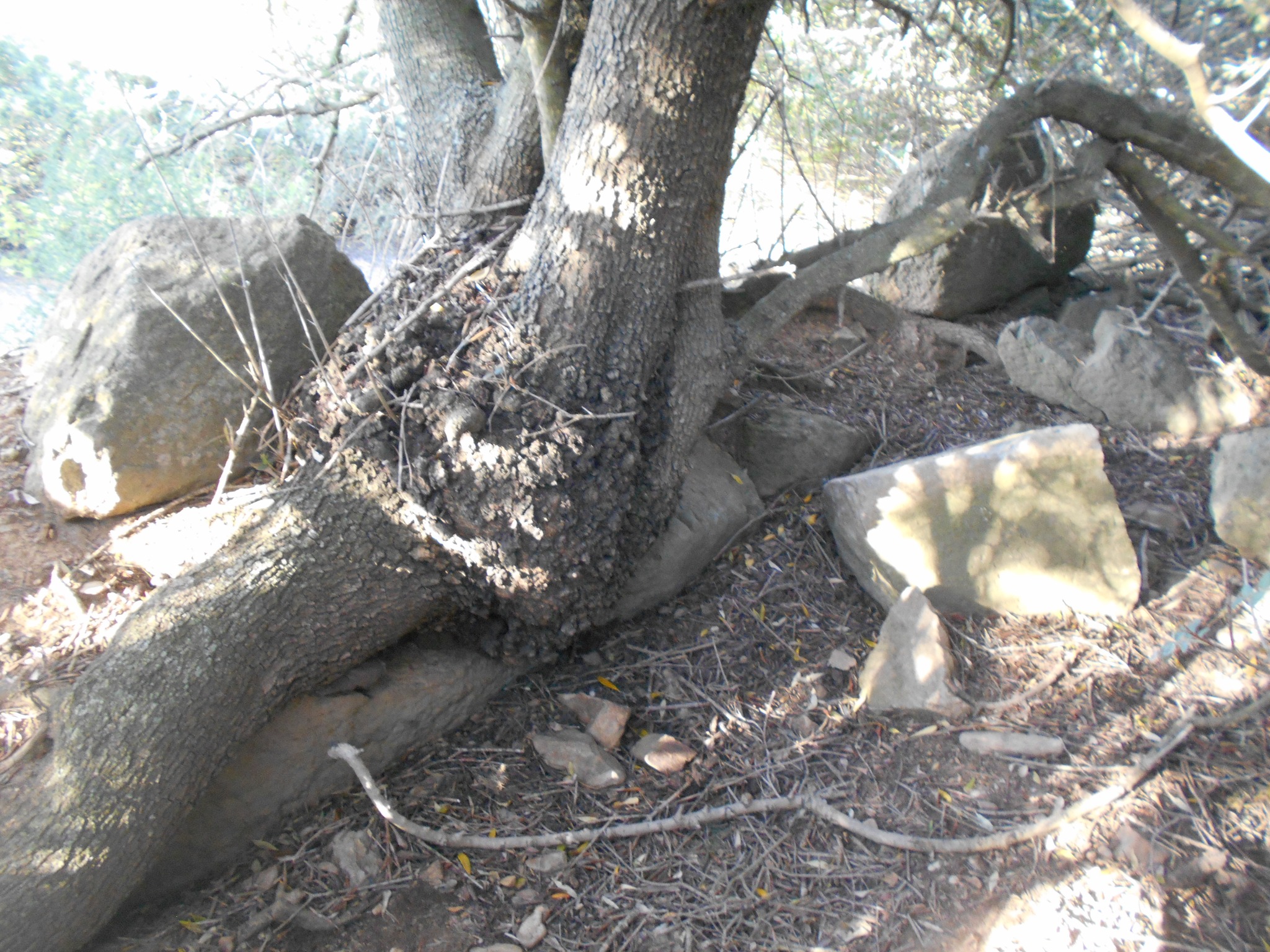 Gli olivastri cresciuti nel corridoio tombale stanno demolendo ciò che rimane. Gli apporti di frasche, fogliame e sedimenti eolici hanno coperto le cavità.
