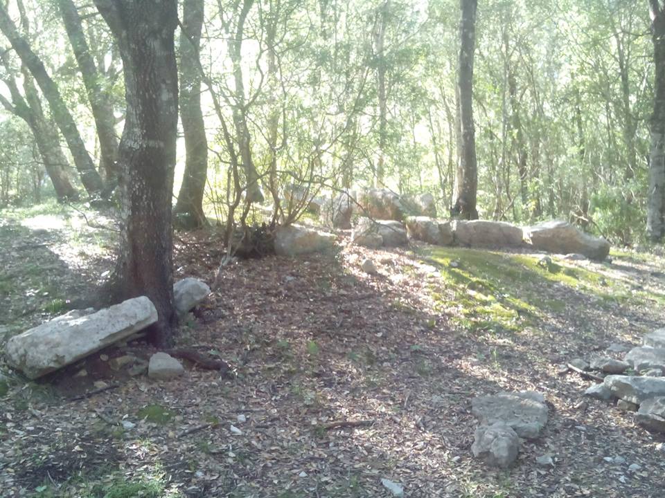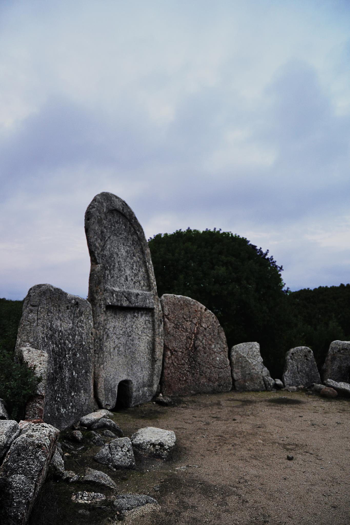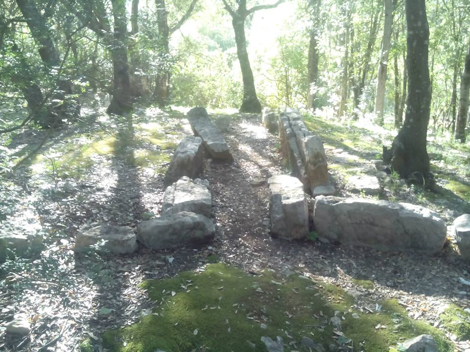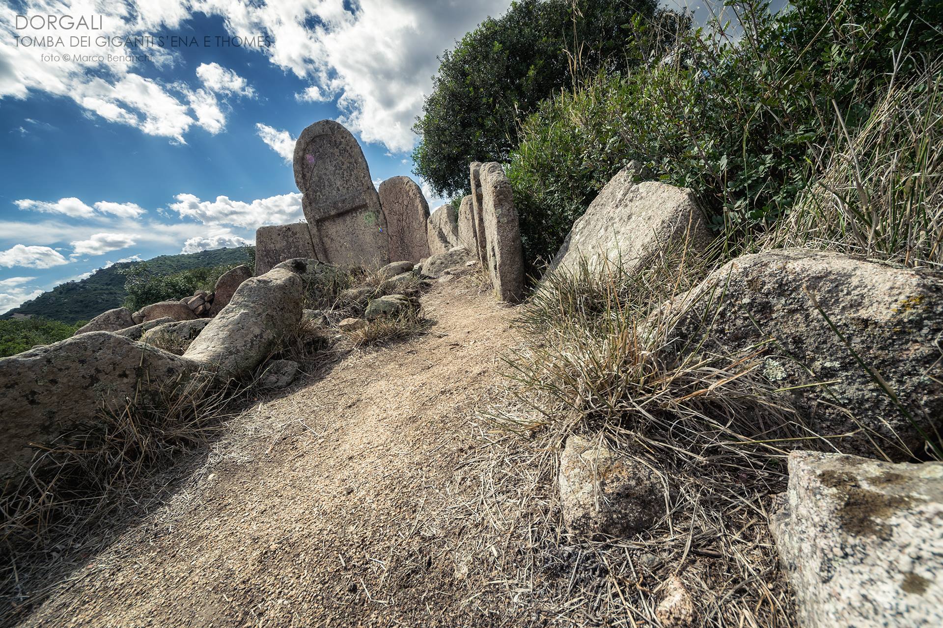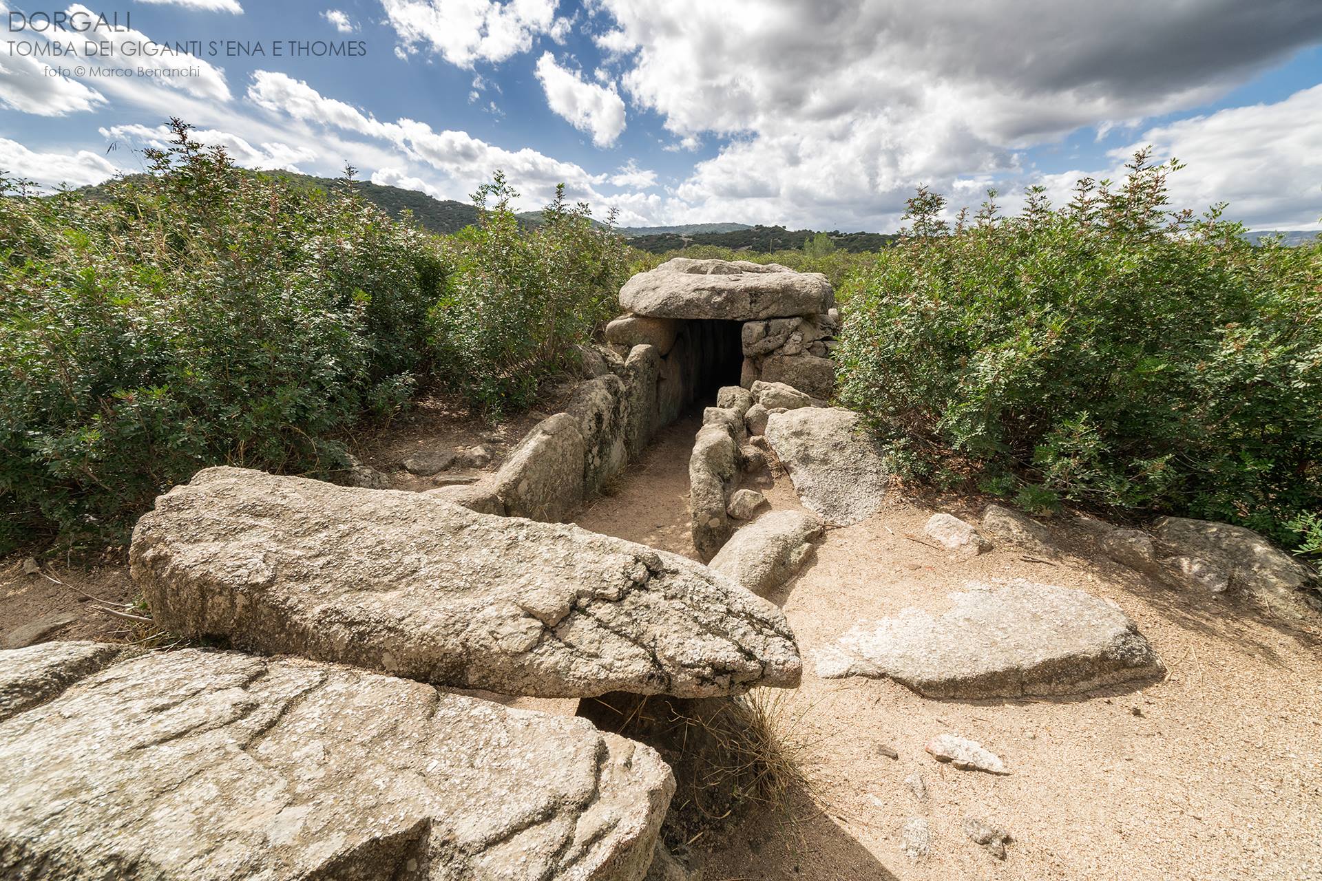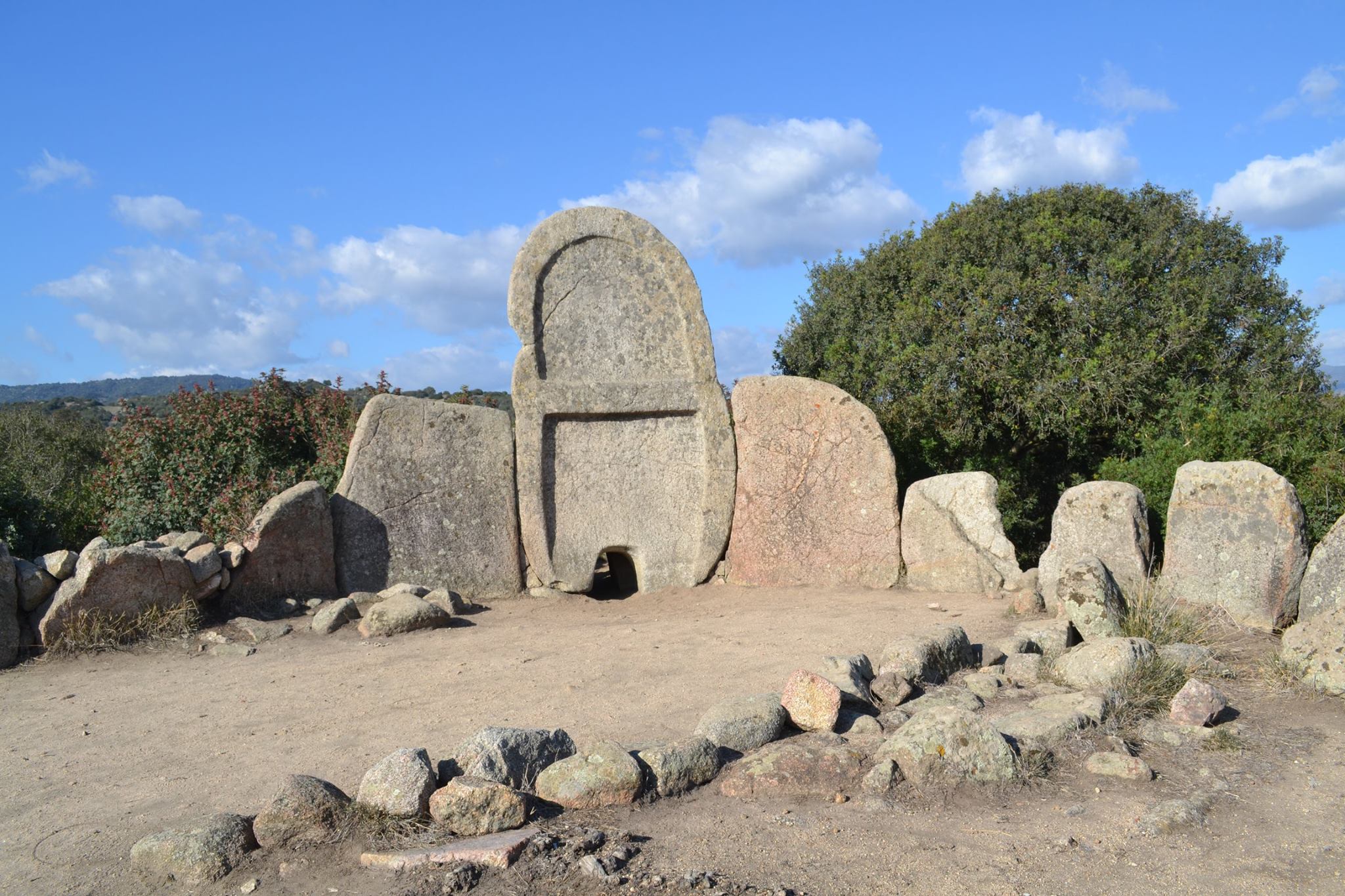 Questa tomba di tipo dolmenico, del periodo del Bronzo Antico, si presenta in ottimo stato di conservazione, infatti conserva quasi intatto il corridoio funebre con copertura a piattabanda, cioè costituita da lastre di pietra disposte orizzontalmente lungo le pareti del corridoio. La grande stele è costituita da un monolite centinato, in cui è scavato il piccolo portello d’accesso alla camera funeraria. L’esedra conserva ancora alcune pietre infisse come erano in origine.