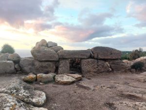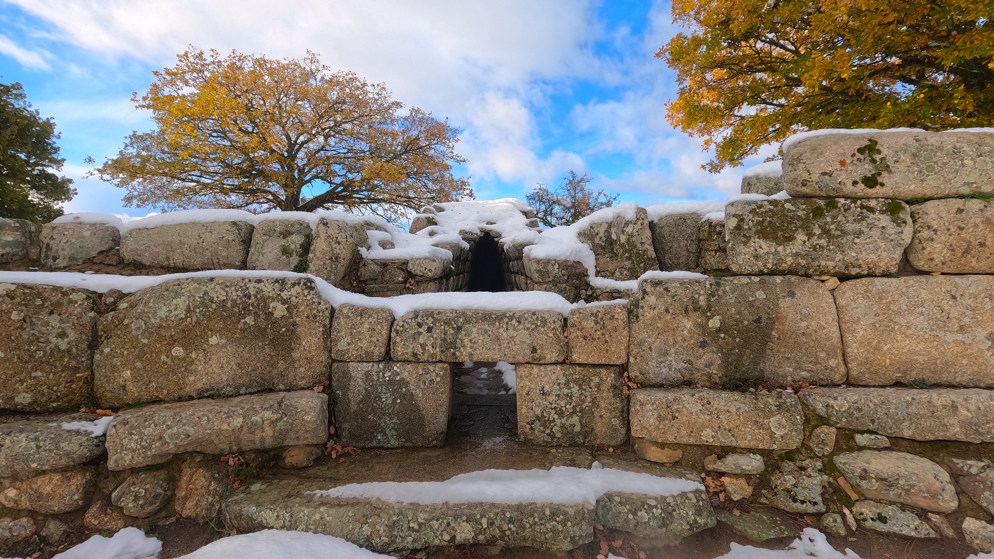 I conci posti di coltello alla base, sono di grandi dimensioni, mentre nella parte superiore si trovano pietre più piccole. La tomba durante gli scavi dell’inizio del secolo scorso condotti dal Taramelli, presentava un’architrave a dentelli ora scomparsa. L’ingresso doveva essere sormontato da una “stele a dentelli” cioè da una pietra incisa con profonde tacche originariamente posta sopra l’architrave della quale un frammento è stato rinvenuto fra il materiale di crollo. Il monumento risulta edificato durante il bronzo Medio II, tra la fine del XV e l’inizio del XIII secolo A.C.. (Comune di Sant’Antioco)