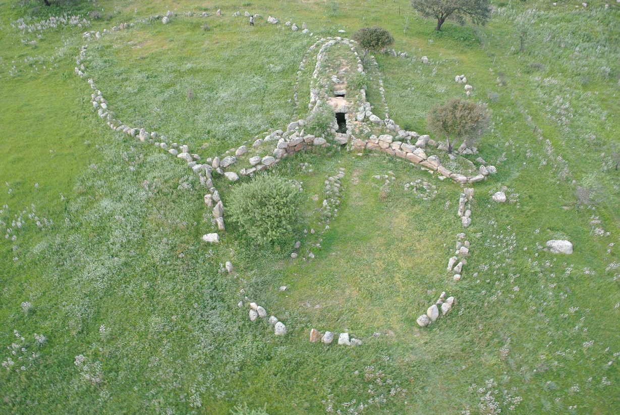 Oltre le due monumentali Tombe dei Giganti, uniche e ben visibili e di eccezionale fattura, sono state individuate altre tre tombe. Per chi è pratico di edifici e urbanistica nuragica questo significa l’esistenza di una comunità di svariate centinaia di persone che aveva avuto necessità di moltiplicare le necropoli.