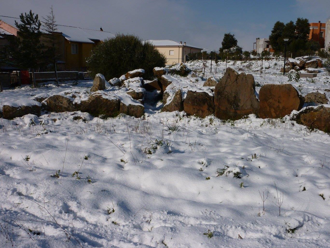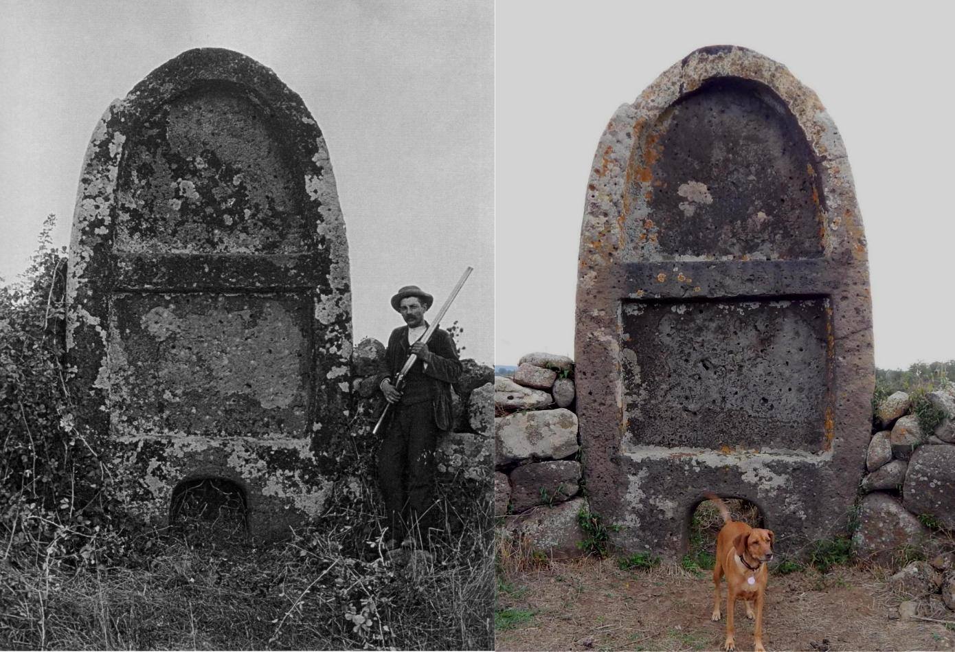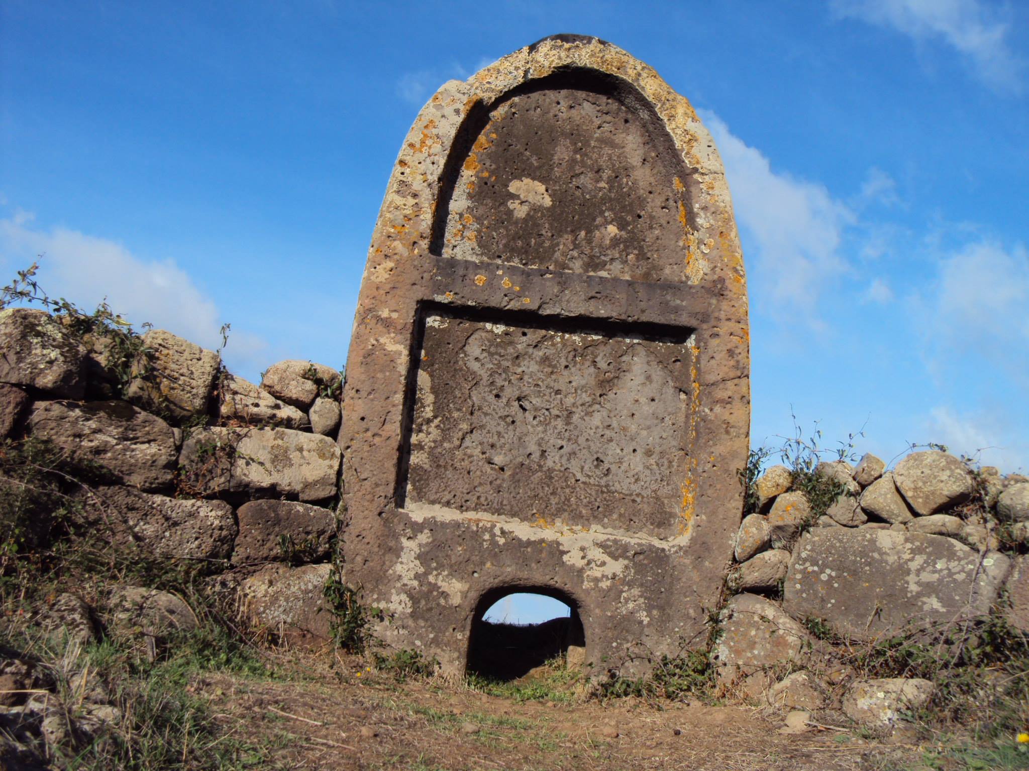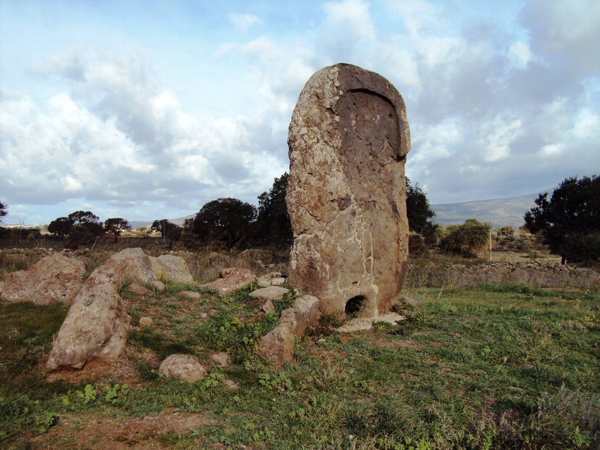Illustrata dal Lamarmora e dal Mackenzie che l’avevano vista quasi intatta, almeno nel profilo di pianta e definita dal Pinza “il prospetto del più bel sepolcro di giganti che si conosce in Sardegna”, la tomba di giganti di Imbertighe è ormai ridotta alla sola stele centinata e alle ali dell’esedra costituite da tre file di pietre.