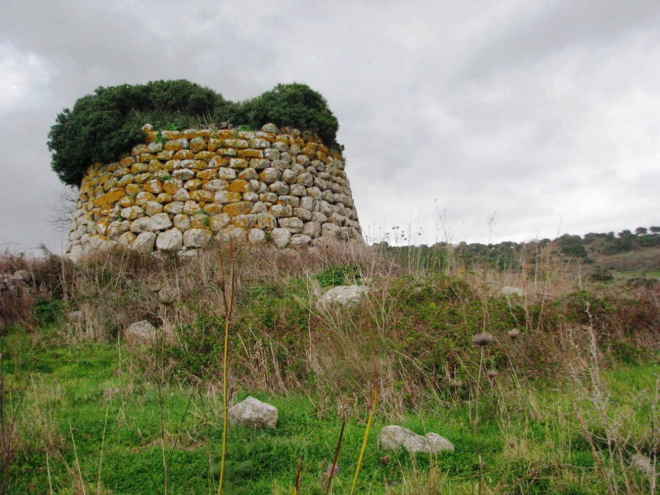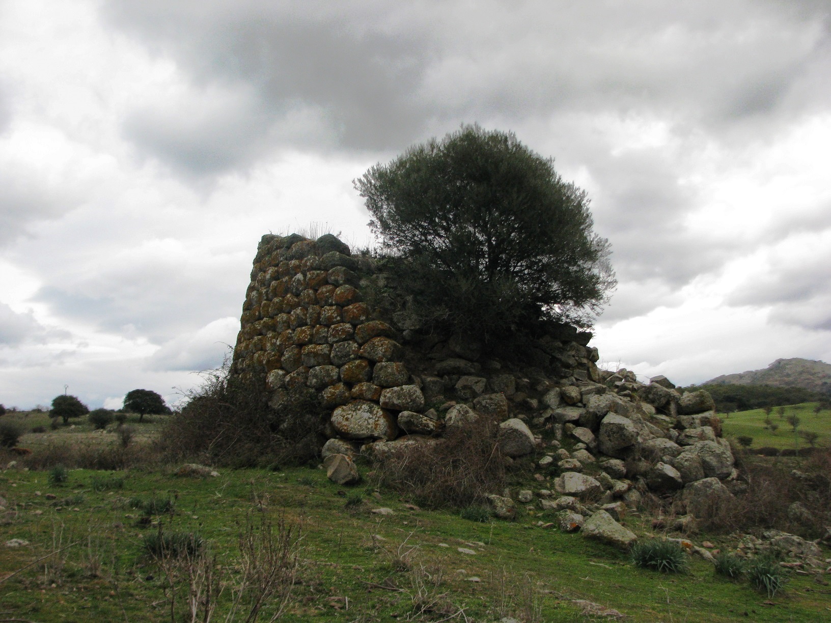 Il nuraghe, ben visibile dalla S.S. 131 DCN, è un monotorre.