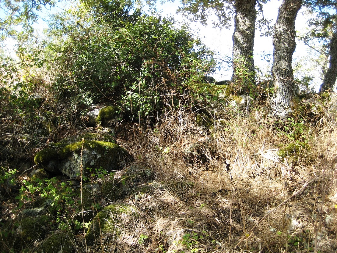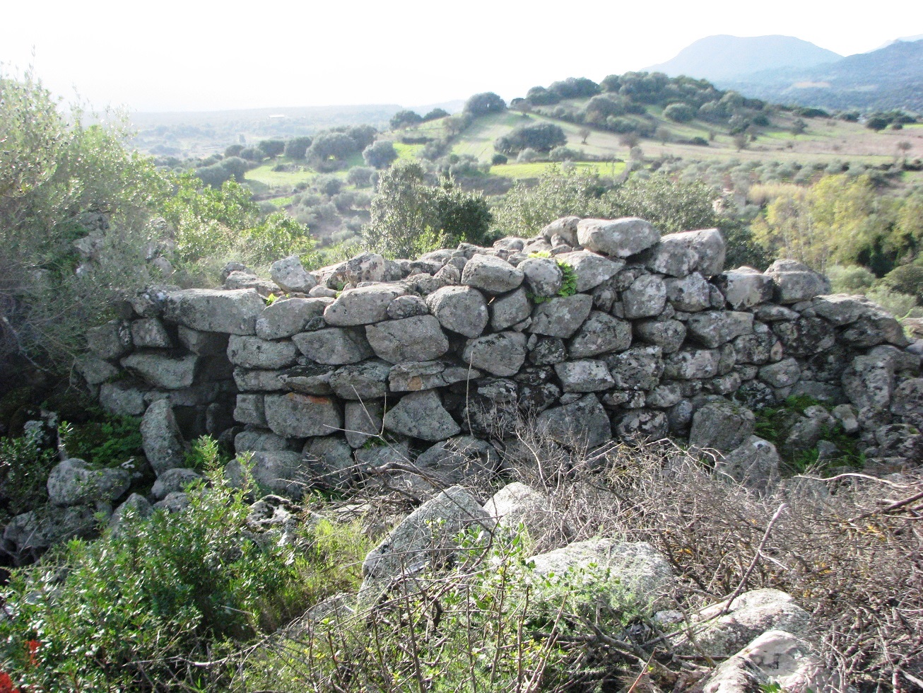 zona ricca di archeologia quella dove è posizionato il Nuraghe, posto nella parte più alta dell’altipiano di sa Sèa domina tutta la Valle dei Nuraghi di Torralba ed in vista (anche se in lontananza) S. Antine. A distanza di 50 metri verso N c’è una strana costruzione, un’area racchiusa da un muro alto circa 2 metri ed che ha una forma allungata di circa metri 10×30