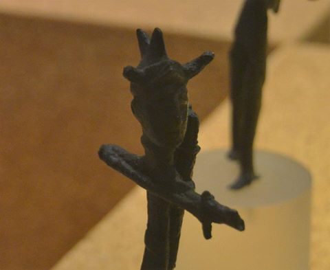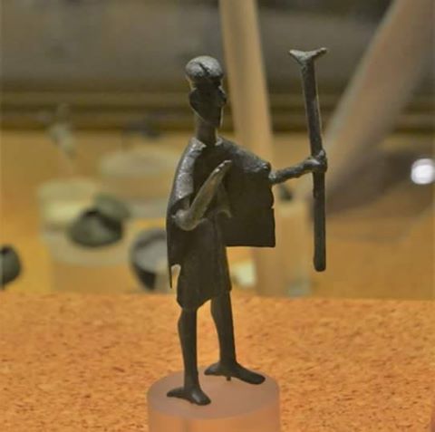 Curiositá: secondo Lilliu trattasi di musico con bastone e tamburo collocato sul capo quindi trattasi di sacerdote addetto a cerimonie cultuali a base di musica e forse di danza (anelli alle caviglie) o forse di musicante che aveva la funzione di richiamare i fedeli tamburellando o che precedeva le processioni suonando lo strumento