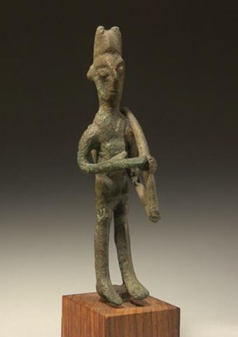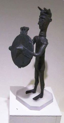 Inoltre il nostro bronzetto sembra raffigurare più che un guerriero un pastore agiato (come rivela la veste) e il pugnale ad elsa gammata avrebbe quindi un valore simbolico più che militare.