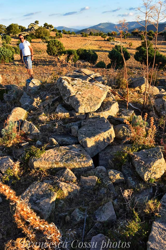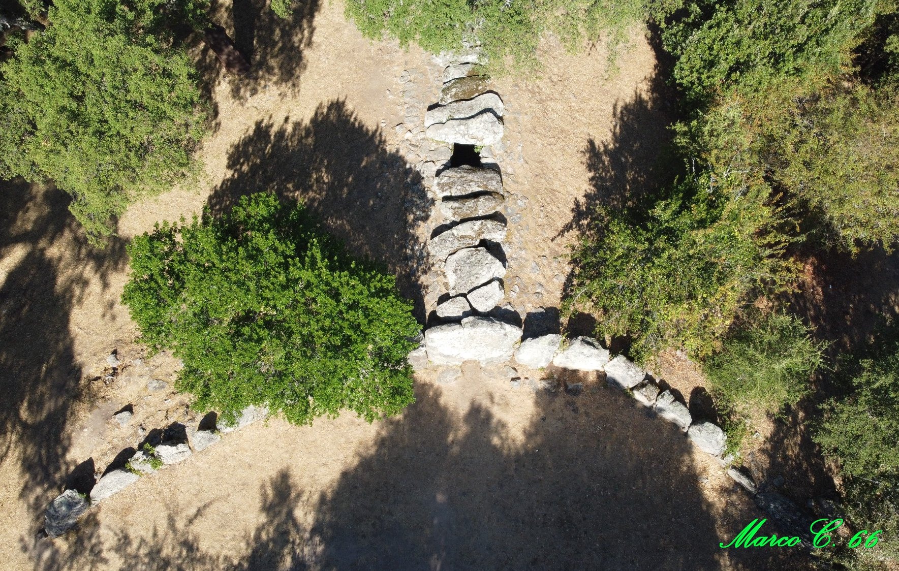 Interessante tomba di giganti a stele centinata bilitica di cui si conserva la parte inferiore con portello. Presente anche l’esedra e la camera funerari