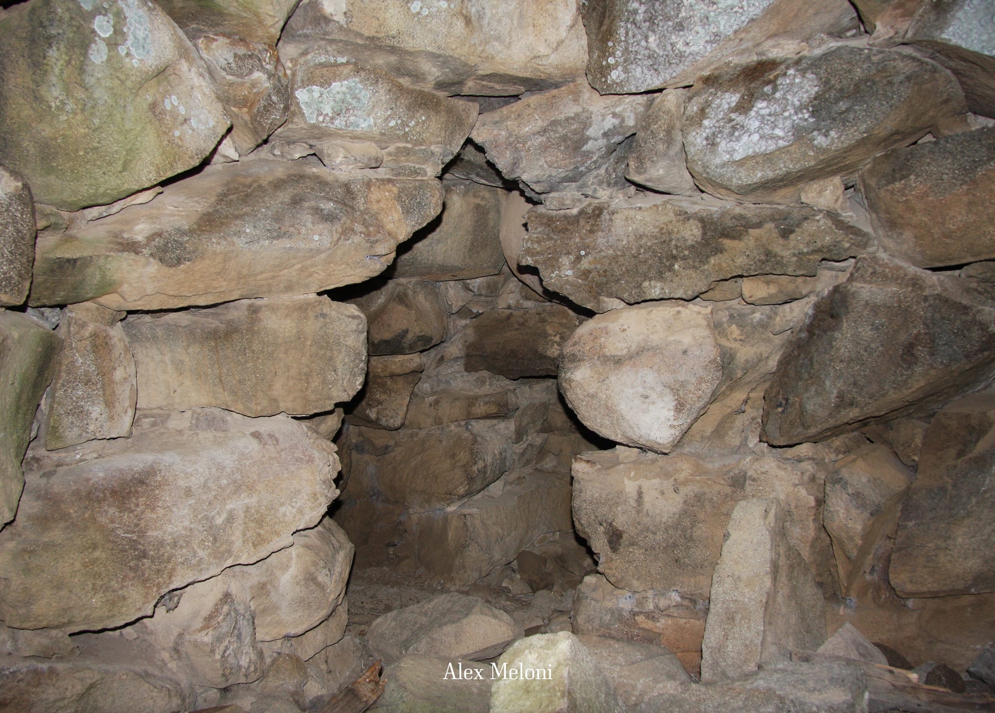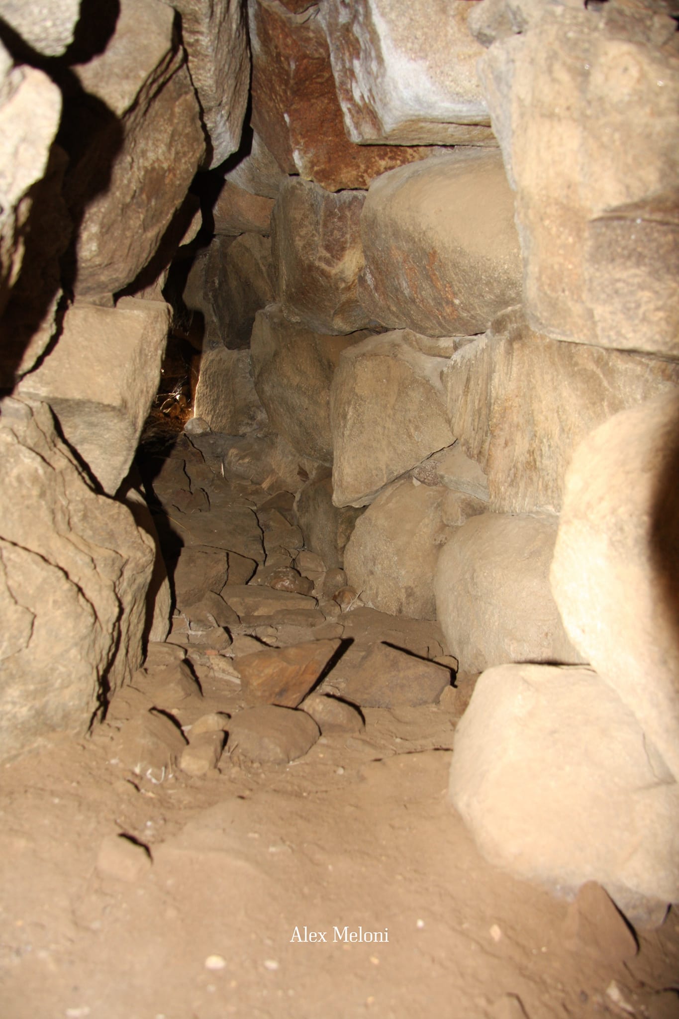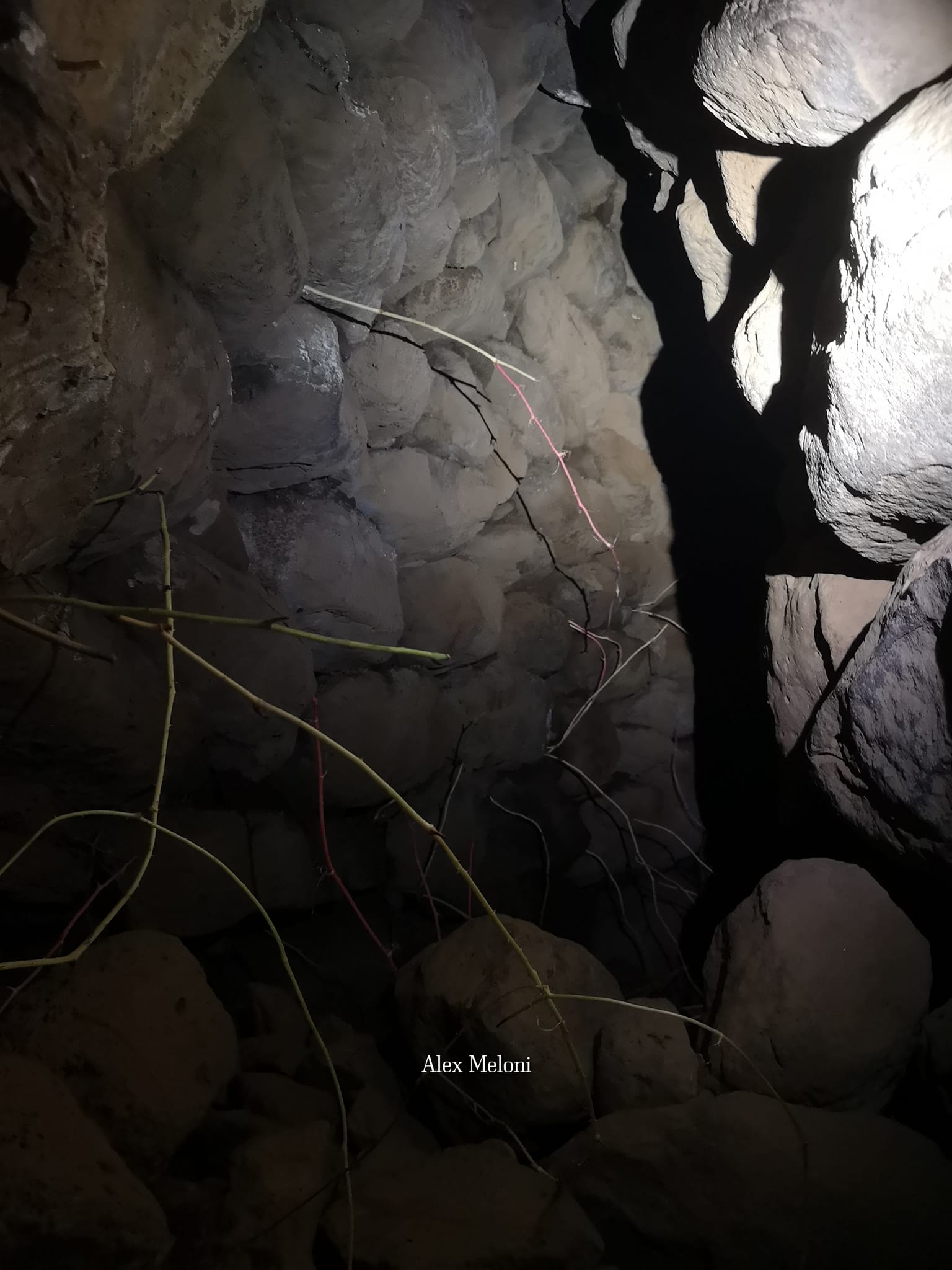 Una torre centrale dalle fattezze arcaiche di basalto, alla quale si avvinghia, frontalmente a sud-est, un bastione dilobato. Un corridoio fende quest’ultimo e conduce all’oscurità del mastio, anticipato a sinistra da un vano scala, in parte ostruito, dal cui soffitto, e dalle cui pareti ondeggianti, lunghe radici tessono lo spazio.