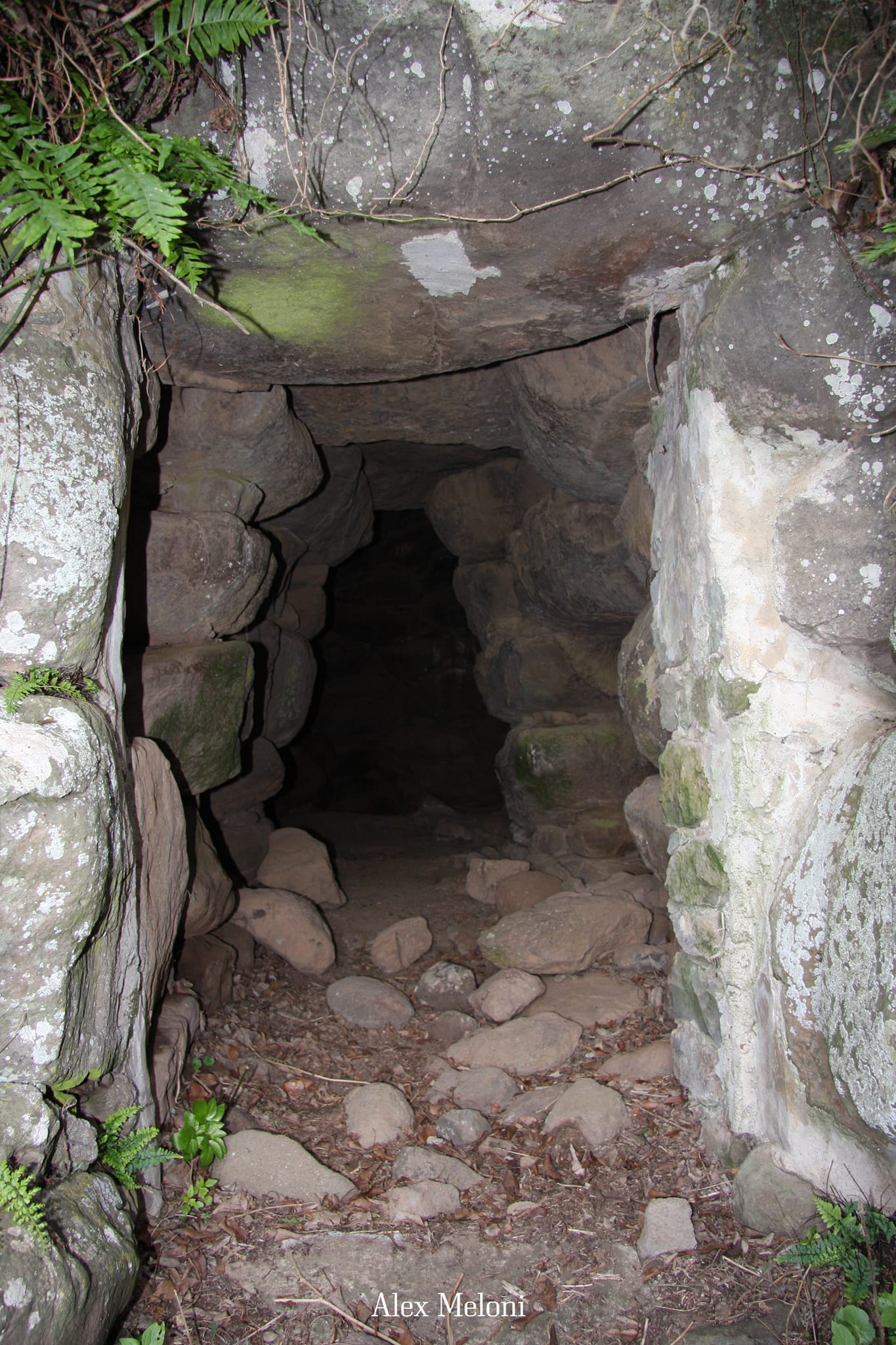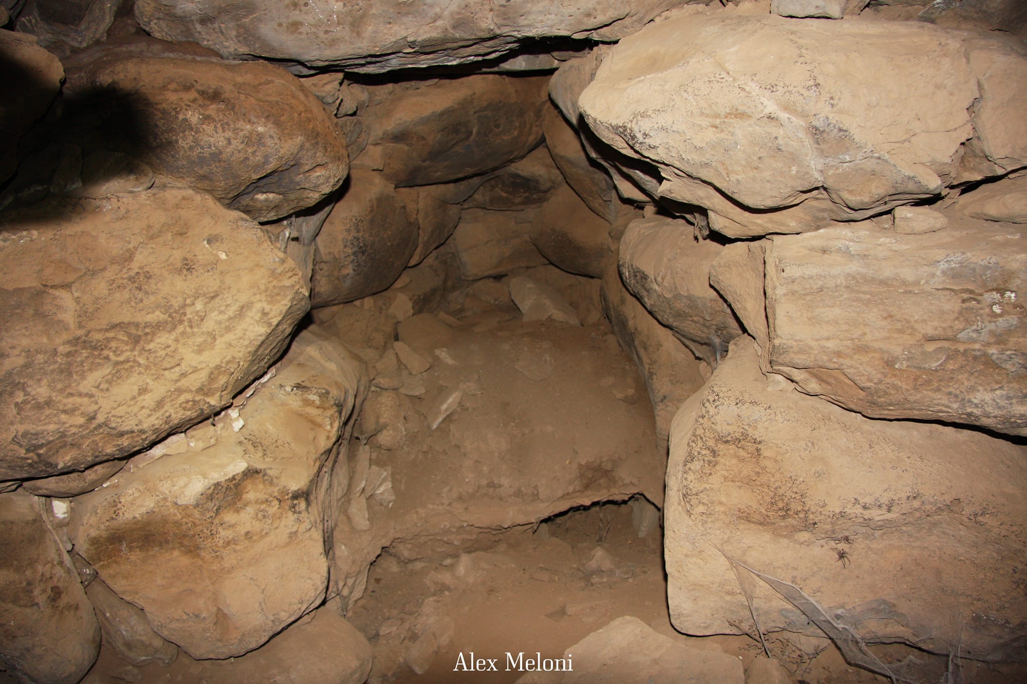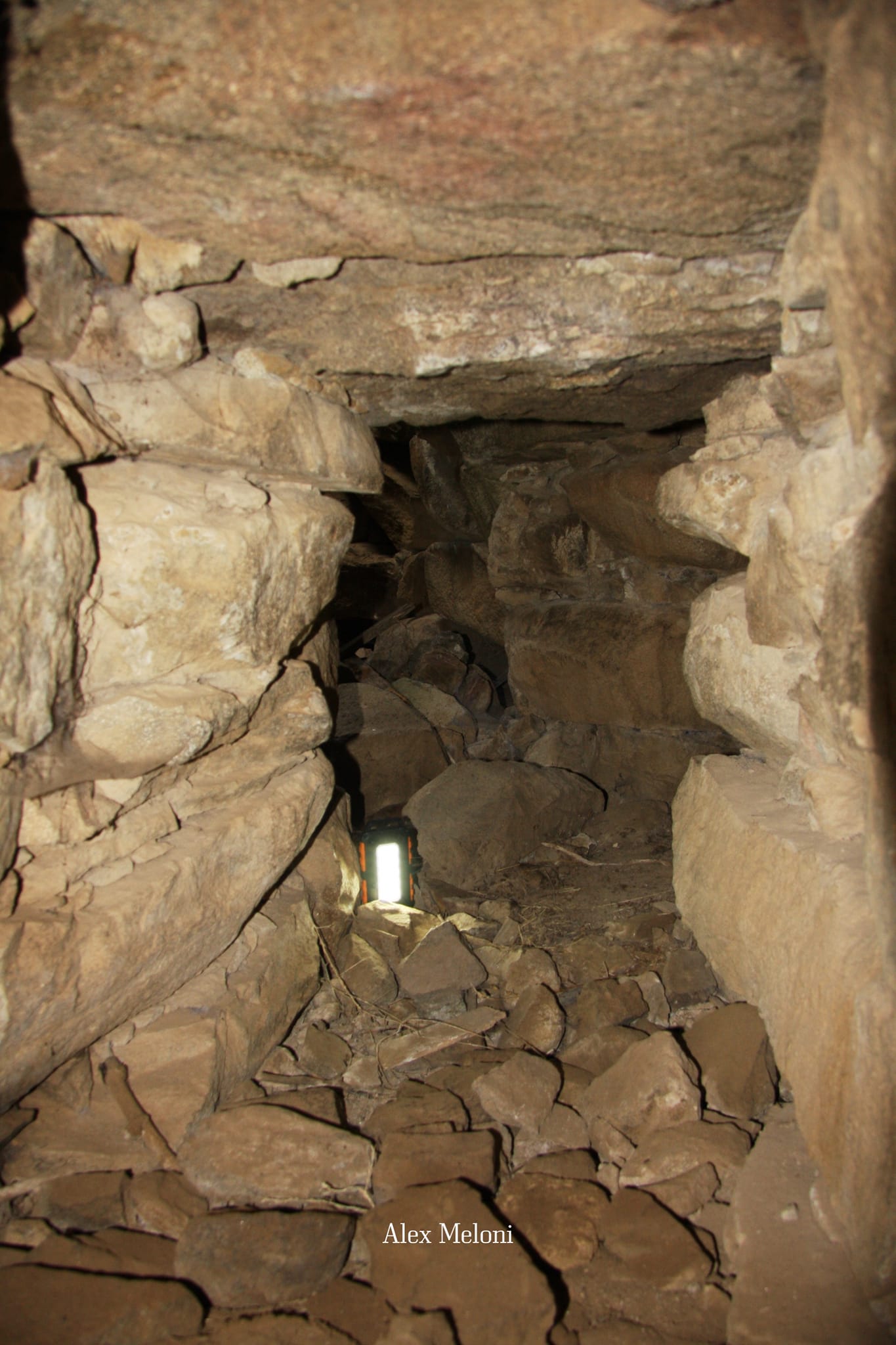 Una torre centrale dalle fattezze arcaiche di basalto, alla quale si avvinghia, frontalmente a sud-est, un bastione dilobato. Un corridoio fende quest’ultimo e conduce all’oscurità del mastio, anticipato a sinistra da un vano scala, in parte ostruito, dal cui soffitto, e dalle cui pareti ondeggianti, lunghe radici tessono lo spazio.