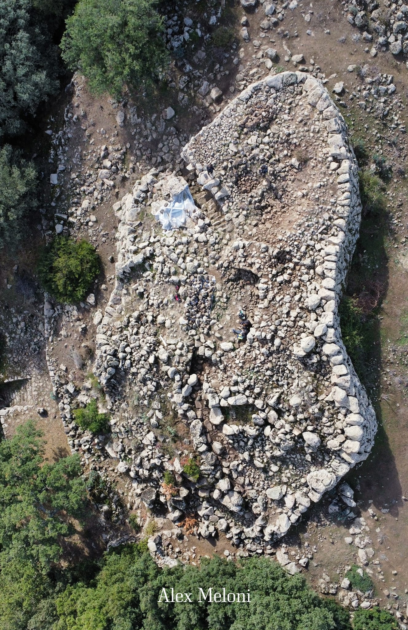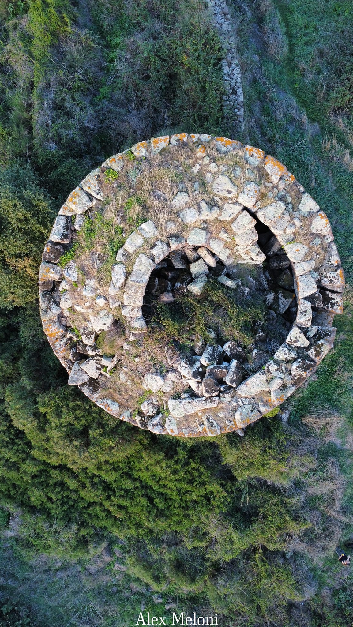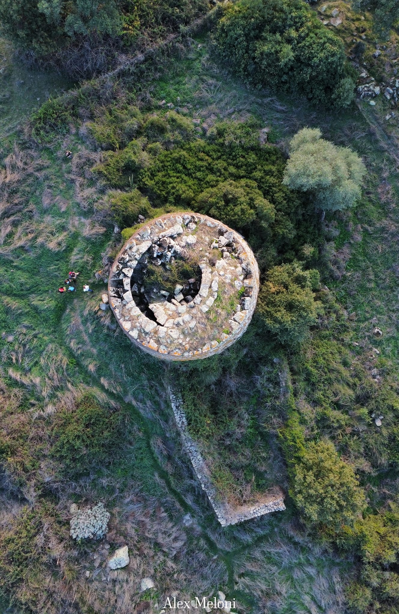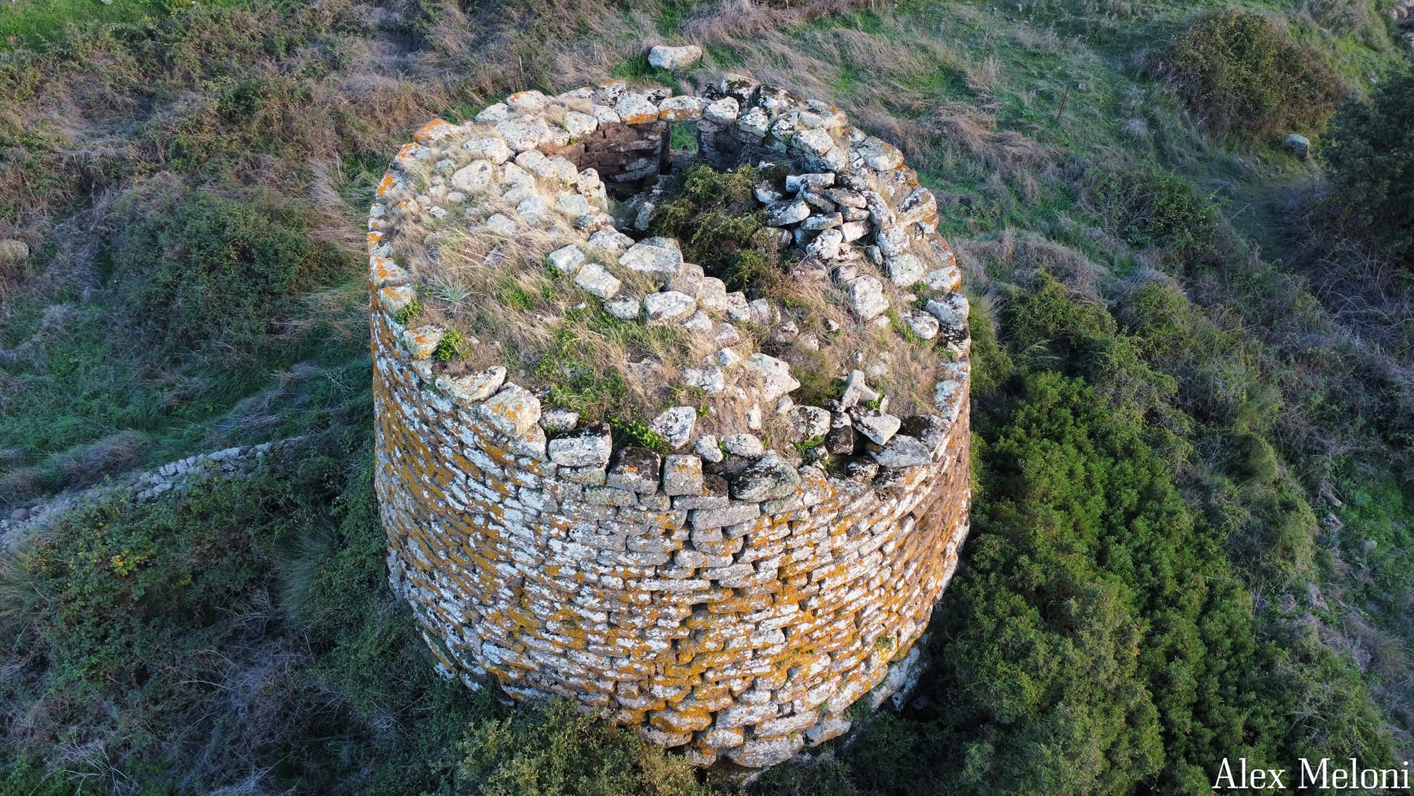 Si tratta di un nuraghe monotorre dalla forma caratteristica a tronco di cono con due camere sovrapposte….Vi si accede dalla porta centrale esposta a sud-sud-est ed è provvisto di una camera centrale con filari aggettanti che chiudono la cupola, e di tre celle laterali disposte ortogonalmente (90°) rispetto all’ingresso. Una scala a spirale in senso orario ci conduce sopra il nuraghe proprio sopra la camera centrale, dove è ancora evidente l’alzato della seconda camera.