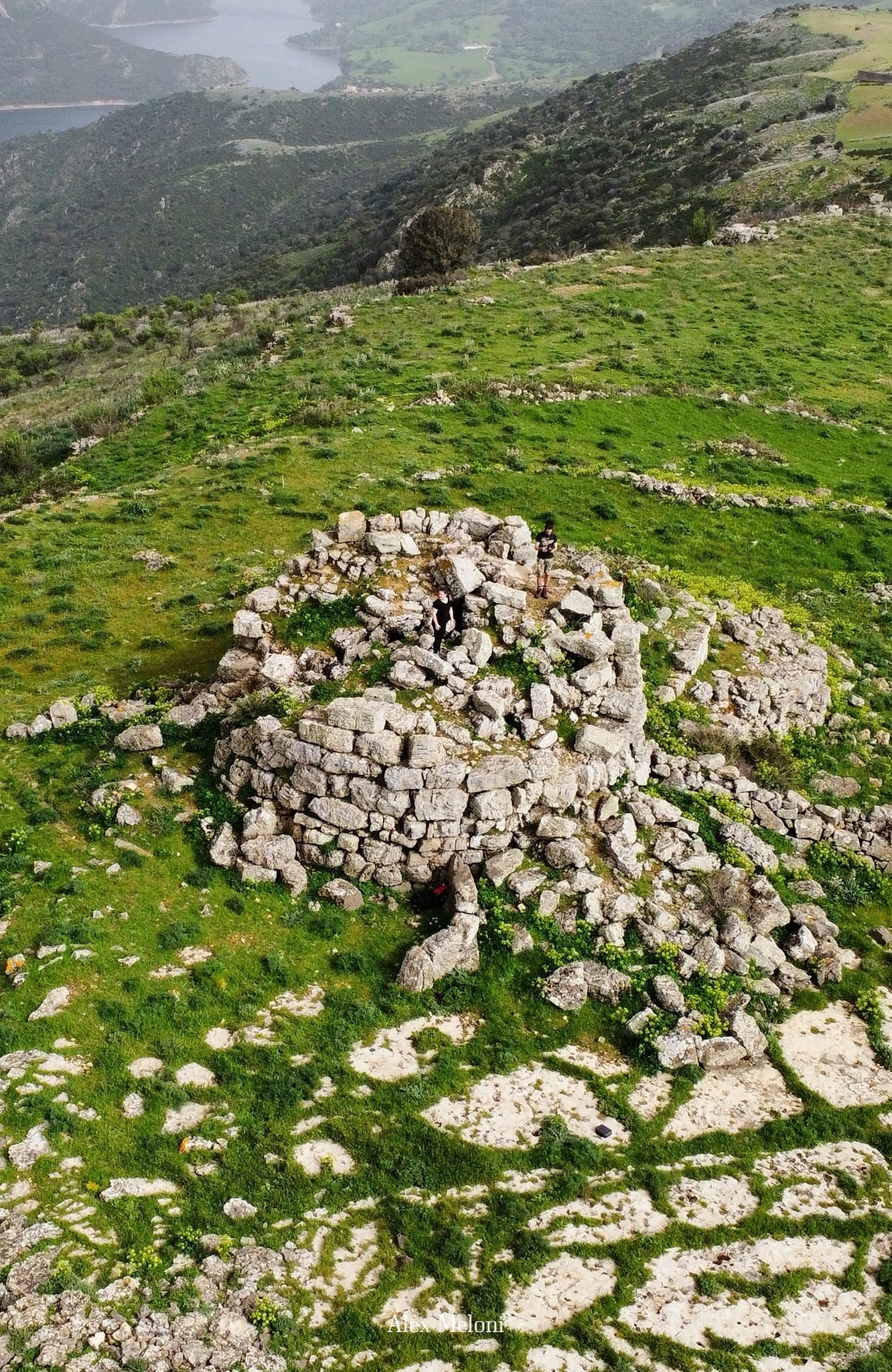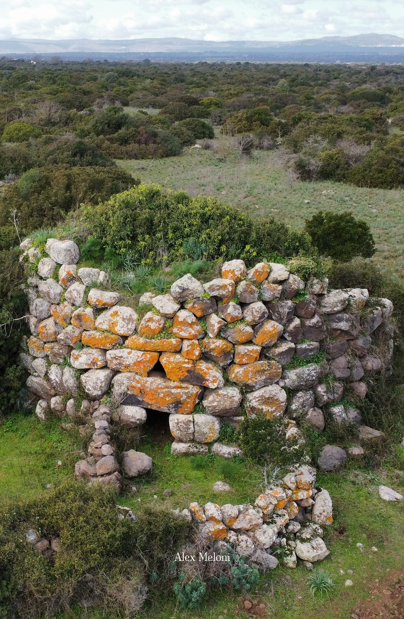 L’edificio è un monotorre che conserva la camera, accessibile mediante un andito con scala e nicchia, e dotata di tre vani sussidiari. La torre (diametro m 14,20; altezza m 1/1,80) è costruita nei filari inferiori con grandi blocchi; a questi si sovrappongono massi di minori dimensioni, rifiniti con cura e messi in opera su corsi orizzontali regolari. … Sardegna Cultura