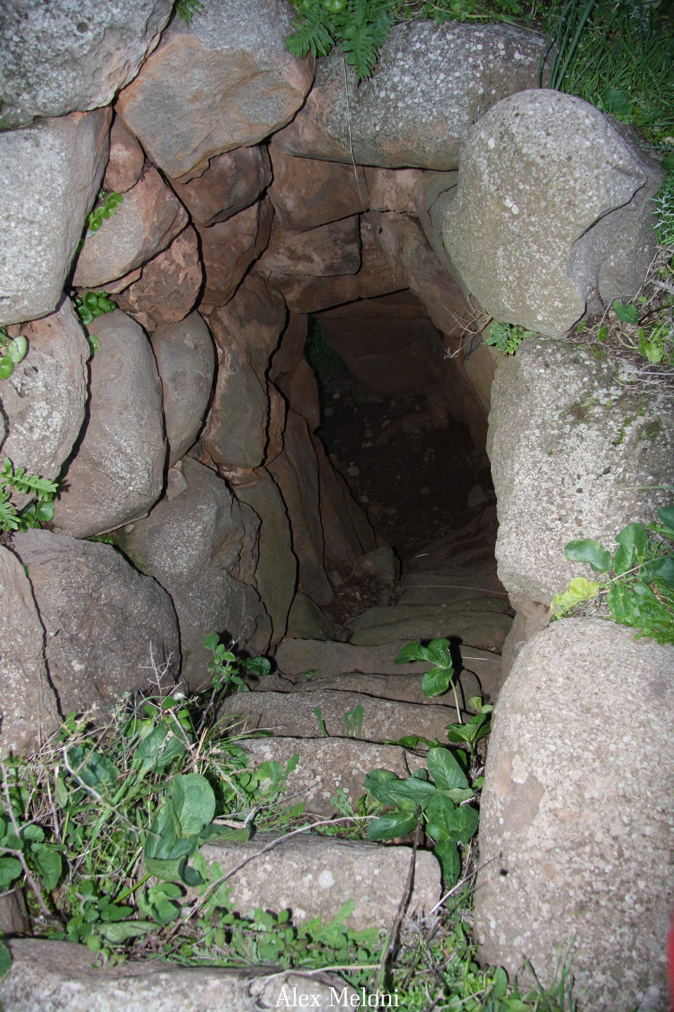 Nuraghe monotorre in massi di pietra arenaria. La camera principale è fornita di tre nicchie asimmetriche. Dal corridoio a destra parte la scala con 15 gradini. Altezza massima della torre m.9,15. Nei pressi sono presenti i resti dell”insediamento e due domus de janas.