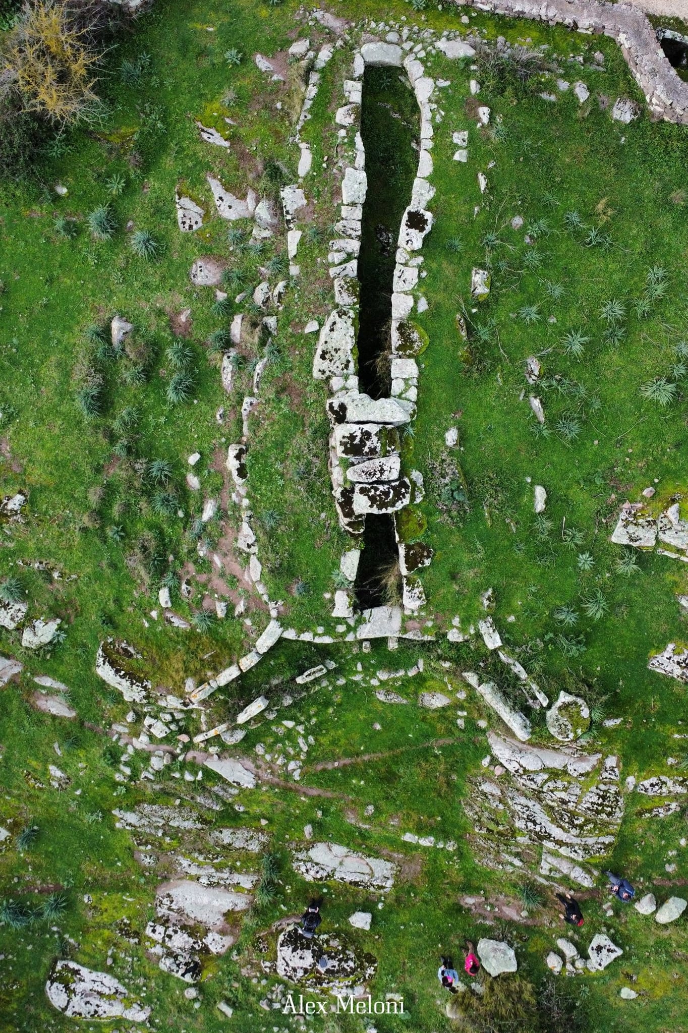 Il nuraghe quadrilobato Alvu, è costruito per buona parte in pietre bianche squadrate, con attorno numerose basi di capanne. Presenta particolari costruttivi nell’incastro delle murature d’angolo non riscontrabili in altri nuraghi.