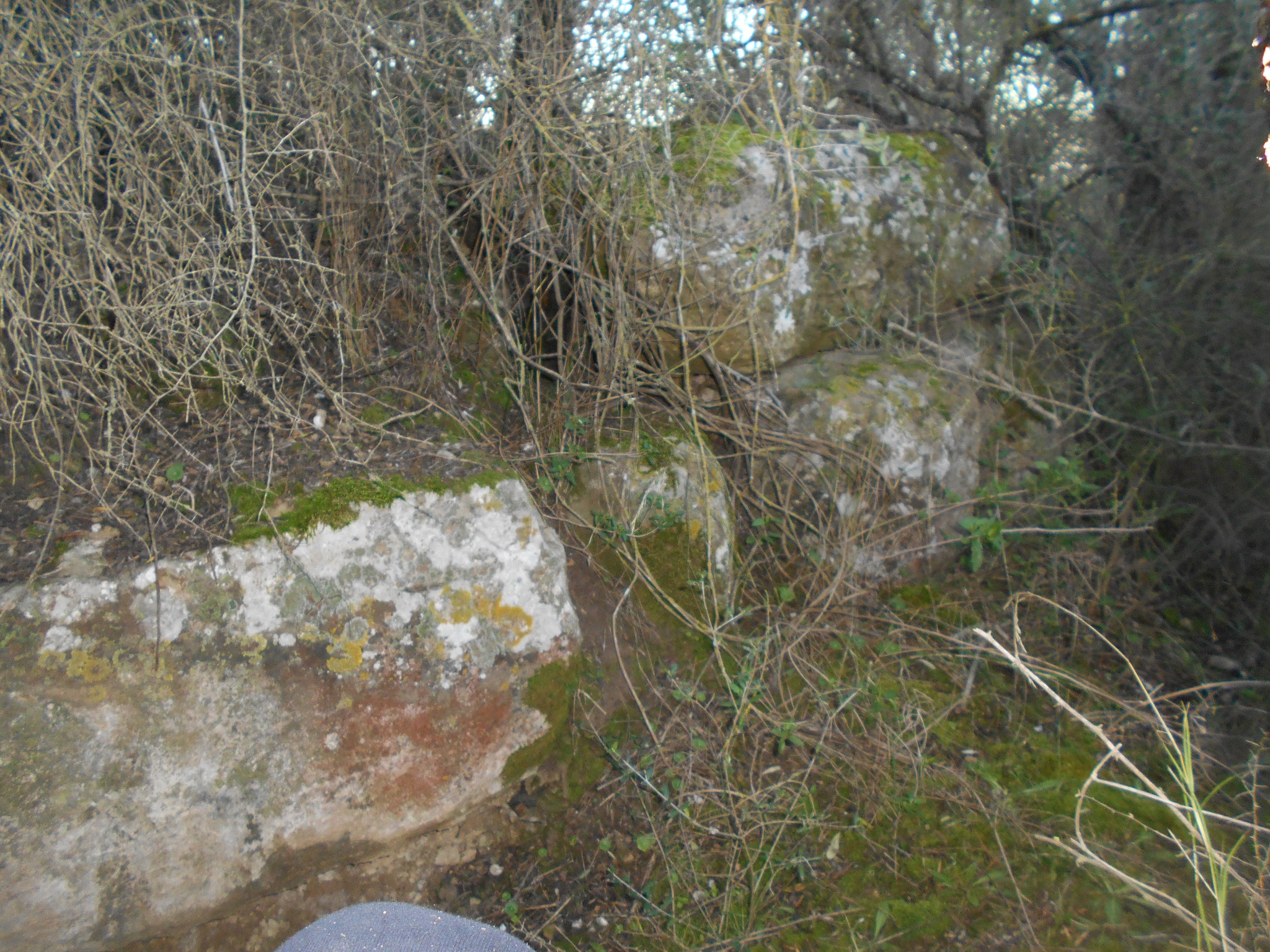 E’ situato in cima ad una collinetta: emergono un paio di filari delle torre principale, in blocchi giganteschi di arenaria; appena visibili 2 aperture sulla parte est.