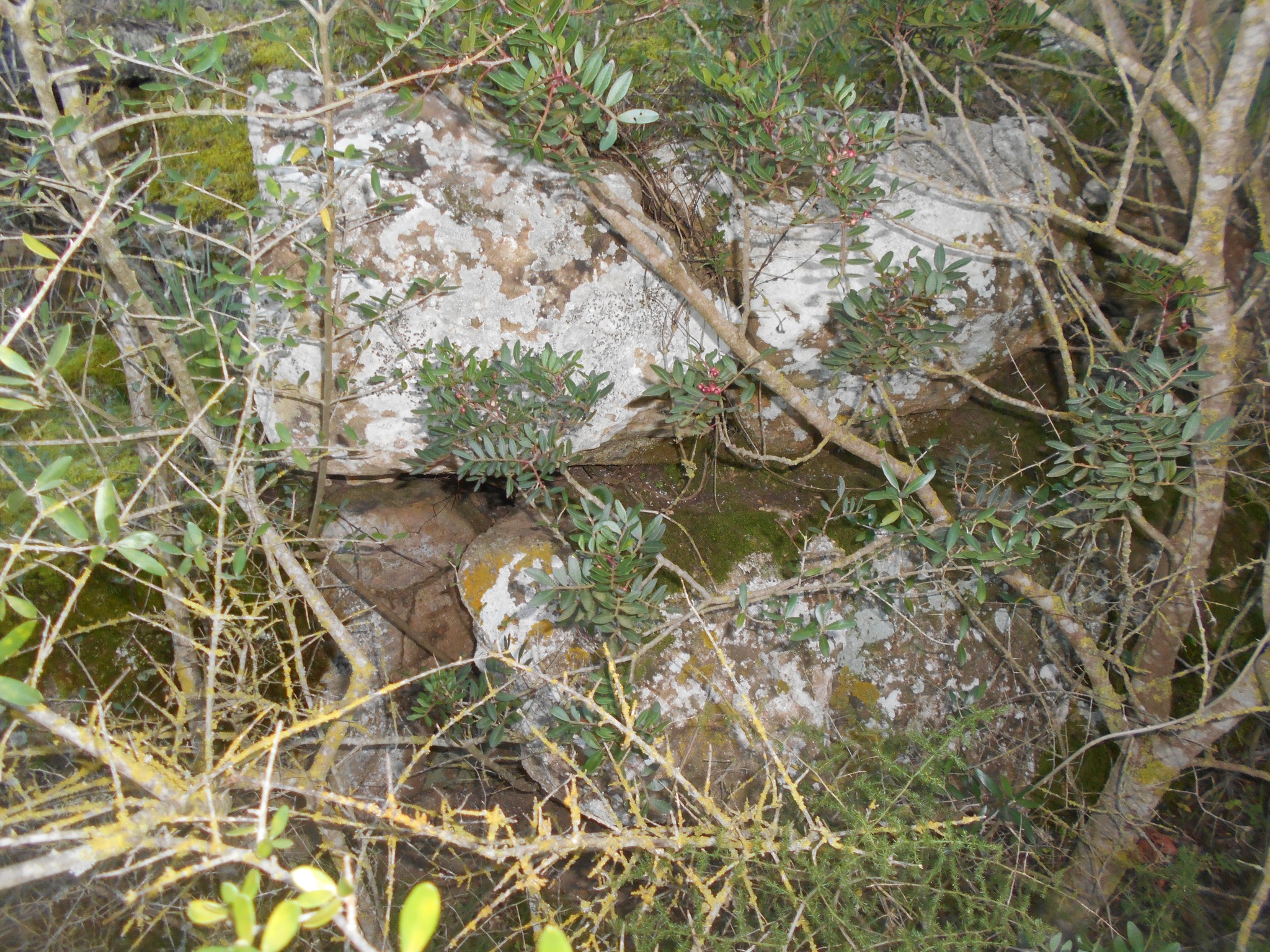 E’ situato in cima ad una collinetta: emergono un paio di filari delle torre principale, in blocchi giganteschi di arenaria; appena visibili 2 aperture sulla parte est.