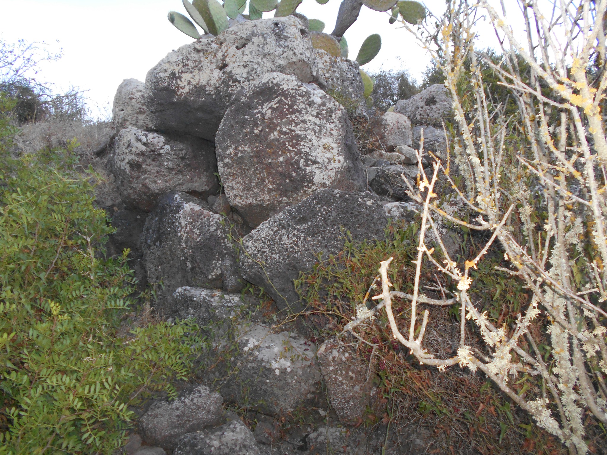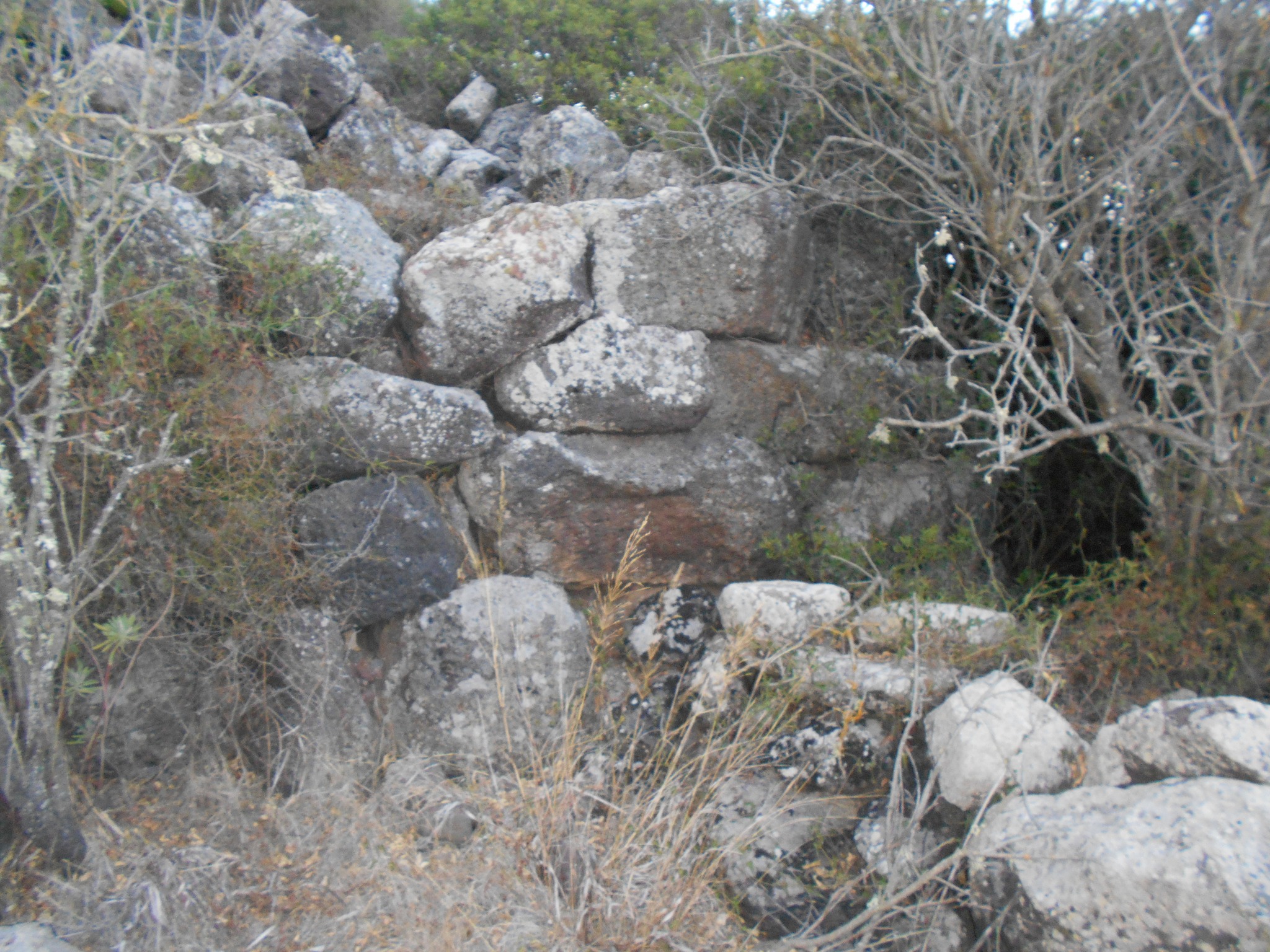 Il nuraghe comprende una torre grande connessa da mura ad una più piccola. I particolari meglio visibili e documentabili sono nella parte nord, in cui si notano 2-3 filari delle torri e la muratura che le unisce, e la parte sommitale della torre più grande, ad ovest, di cui sono visibili dei bei conci in calcare.
