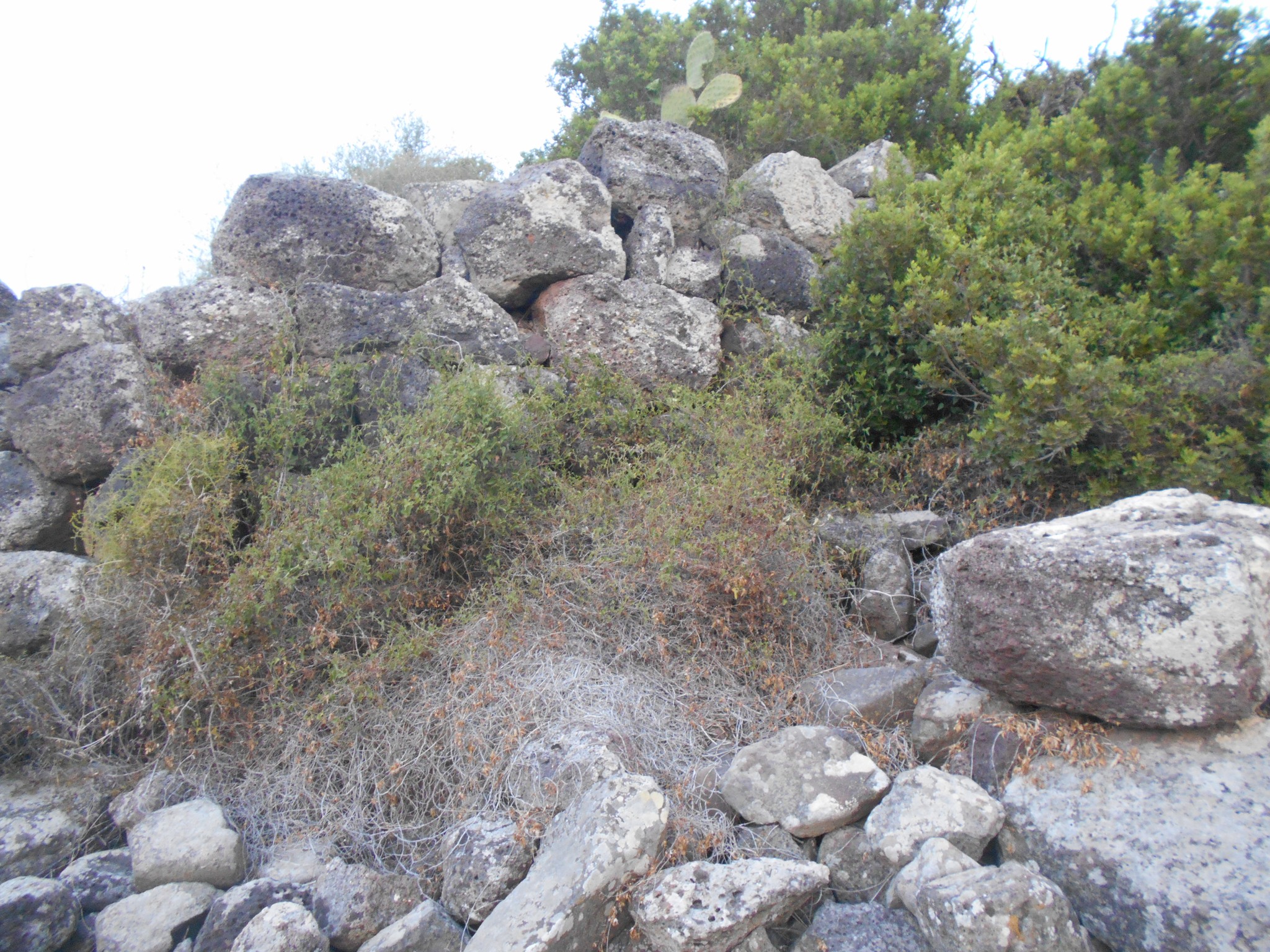 Sono visibili la torre centrale, molto larga, ed altre 2 torri, una a sud est e l’ altra a nord ovest, più una parte di muro legante la torre centrale a quella nord-occidentale. L’ altezza massima visibile delle mura delle torri è fino ai 3 metri.