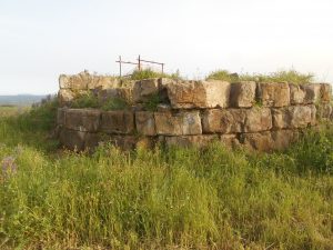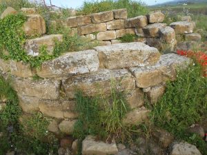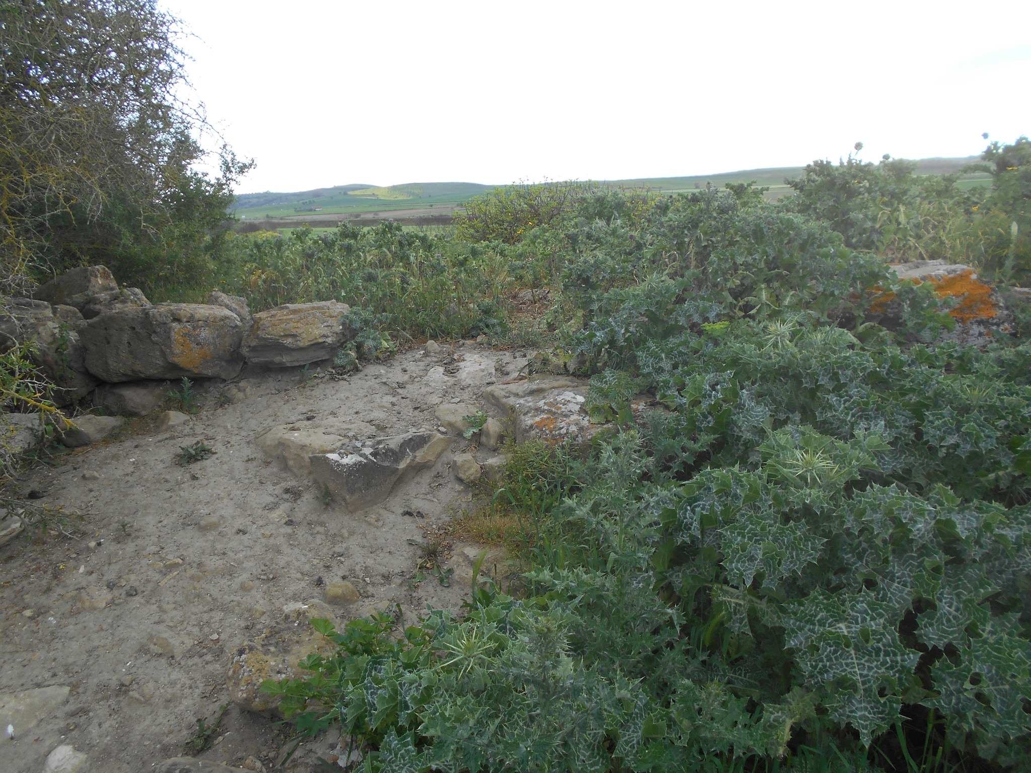 Attorno si scorgono i resti di strutture varie, spesso coperte da sterpaglie che ne impediscono l’identificazione, a parte un pozzo stretto e profondo- giustamente coperto da una grata- ed una larga capanna più giù ad ovest.