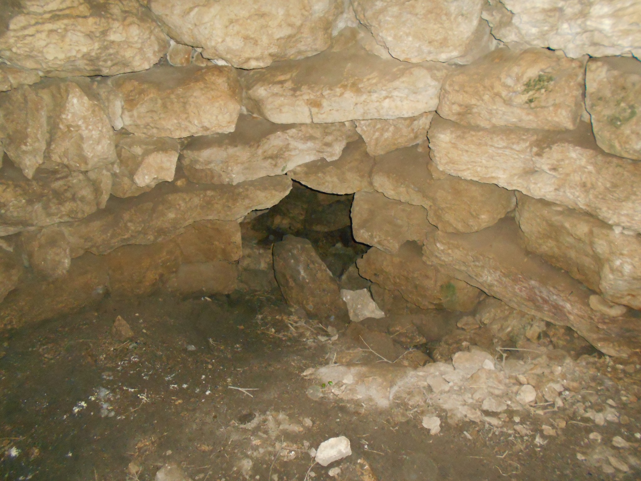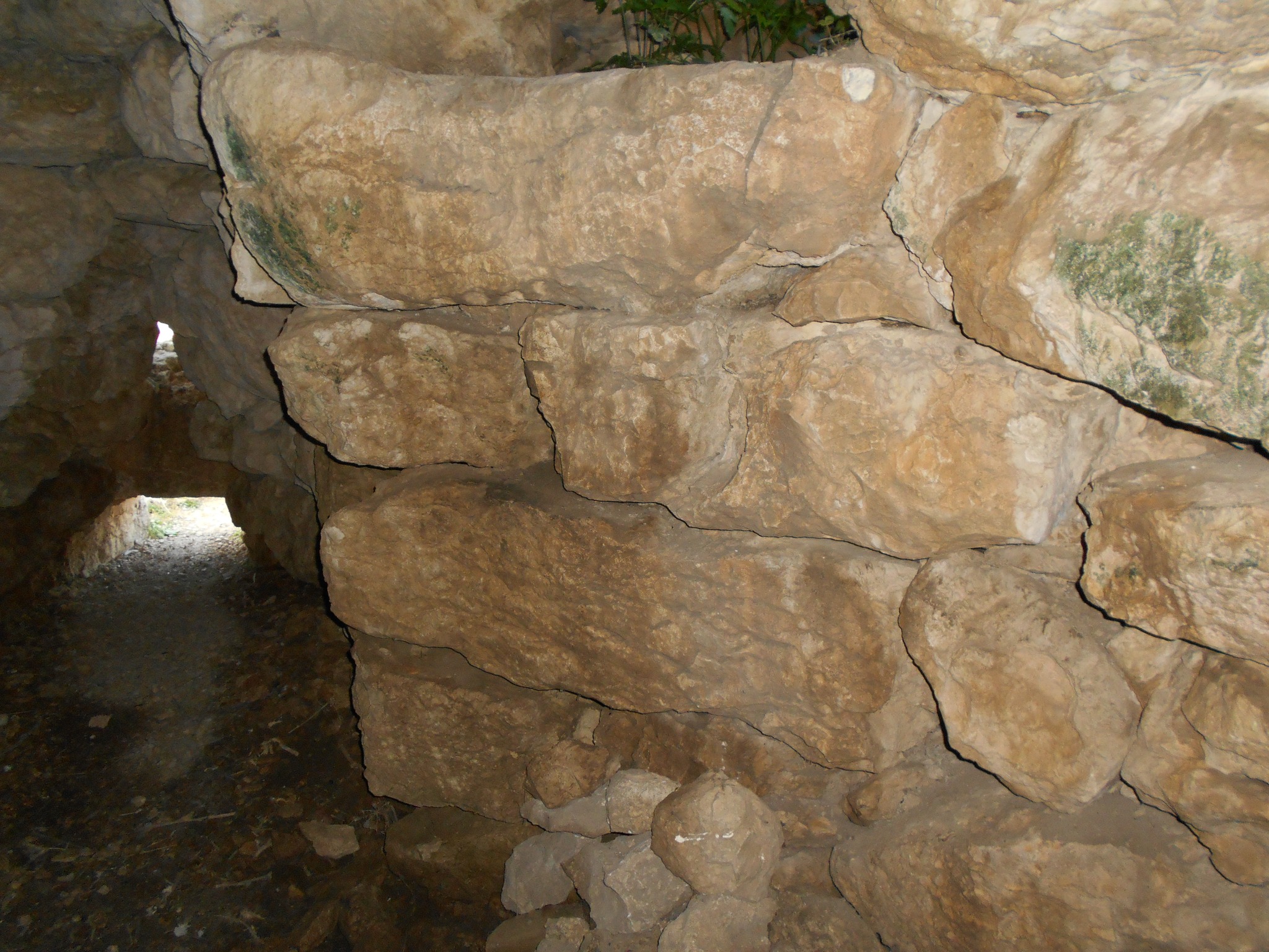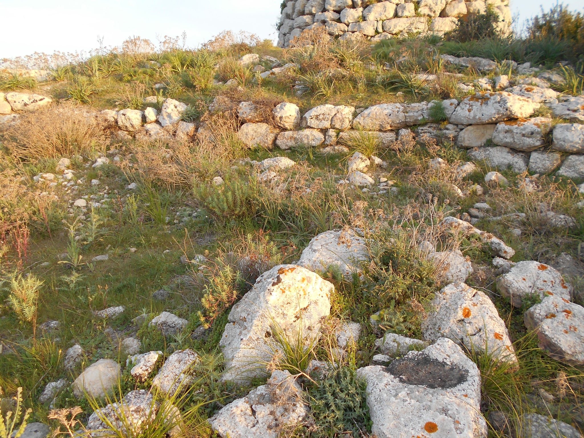 Che si tratti di un polilobato lo si vede da muri di collegamento che si diramano dalla torre centrale; ma la vegetazione e la terra rendono illeggibile la planimetria. E’ realizzato con enormi blocchi di marna. Sul lato ovest possiamo ammirare i filari perfettamente circolari, con blocchi lavorati e adattati proprio per ottenere queste curvature perfette.