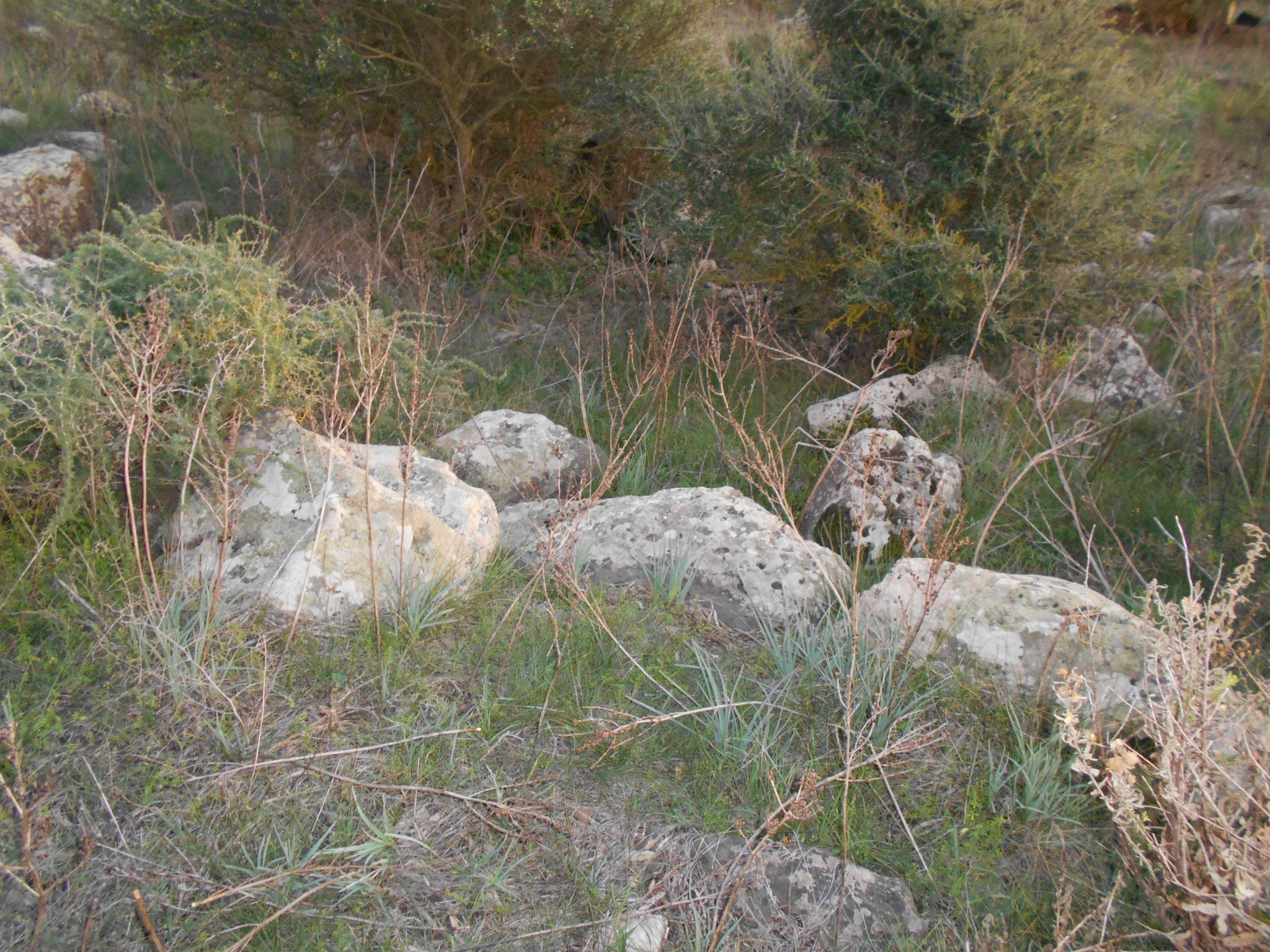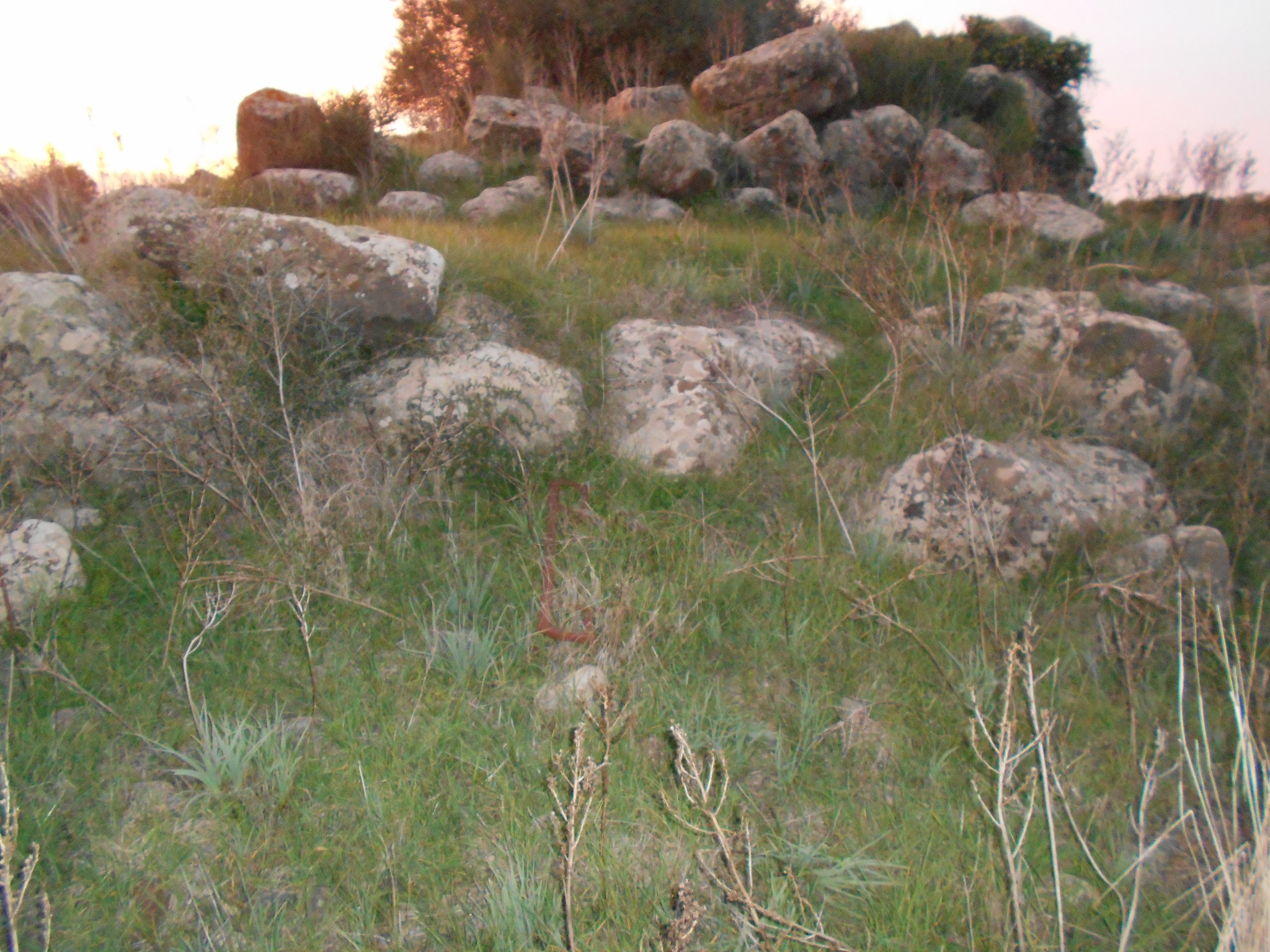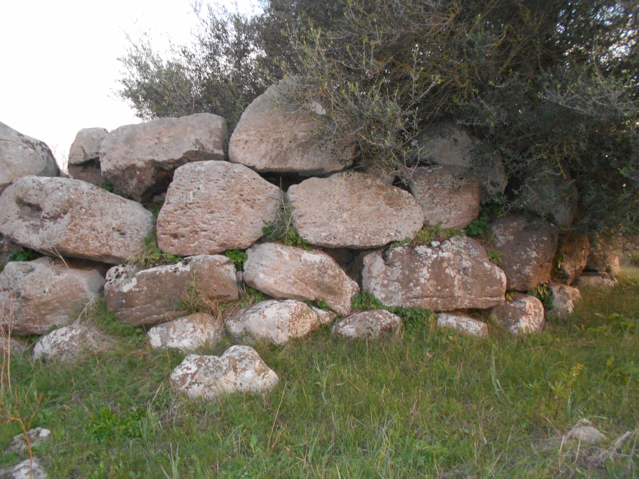 Che si tratti di un polilobato lo si vede da muri di collegamento che si diramano dalla torre centrale; ma la vegetazione e la terra rendono illeggibile la planimetria. E’ realizzato con enormi blocchi di marna. Sul lato ovest possiamo ammirare i filari perfettamente circolari, con blocchi lavorati e adattati proprio per ottenere queste curvature perfette.
