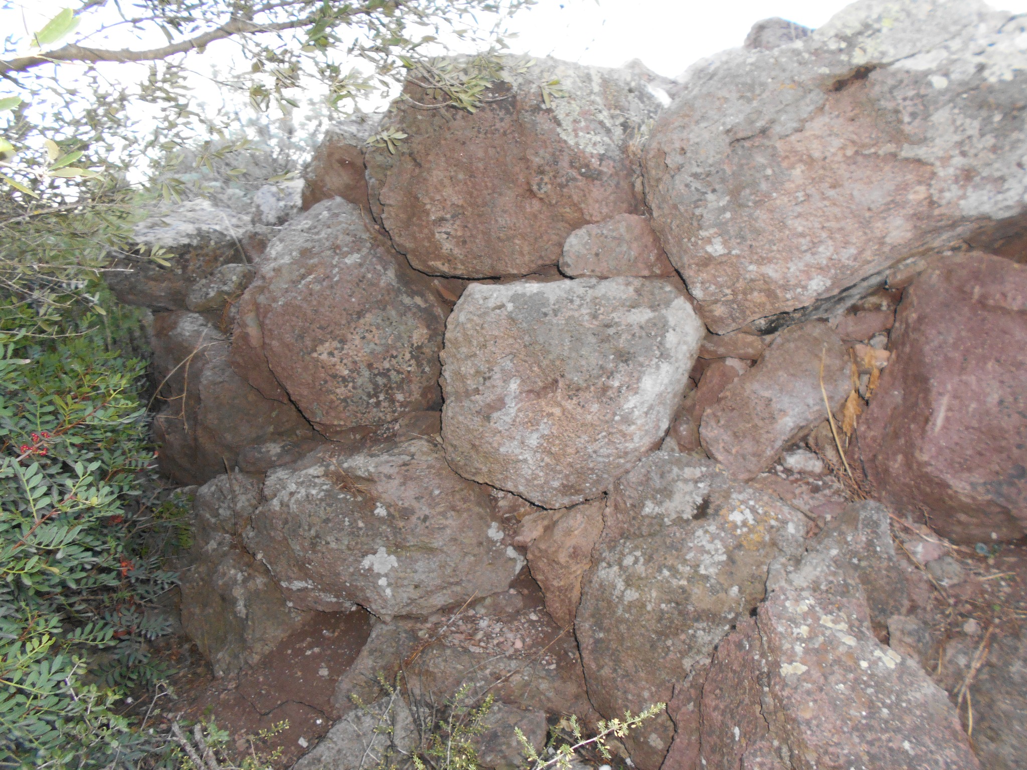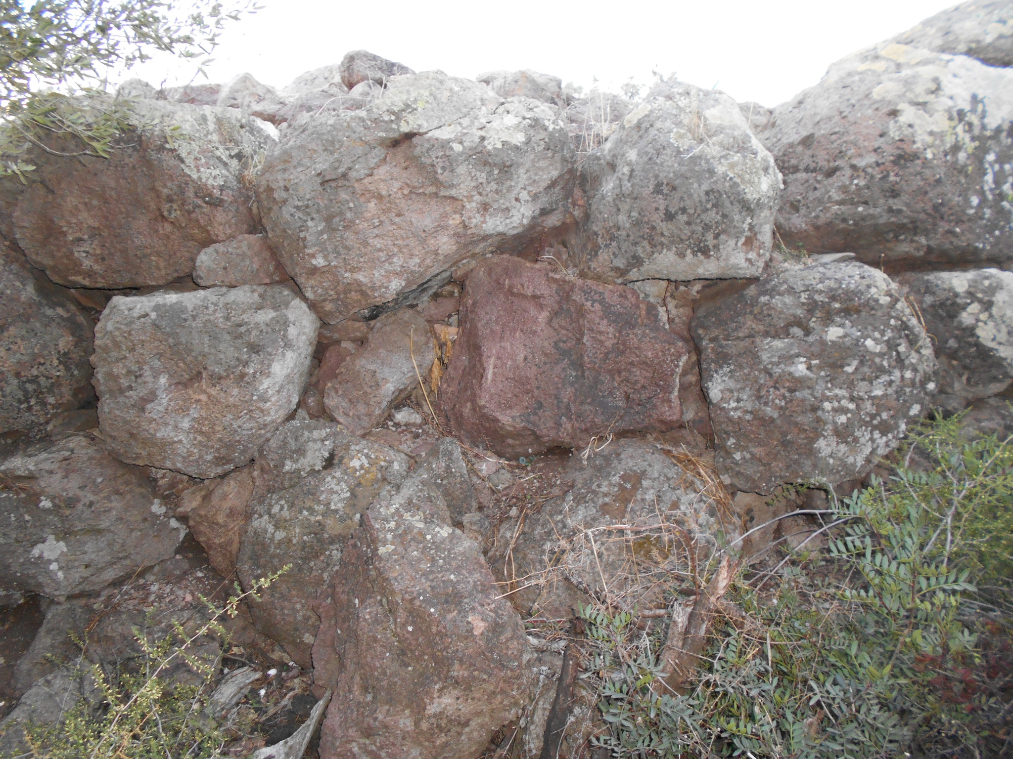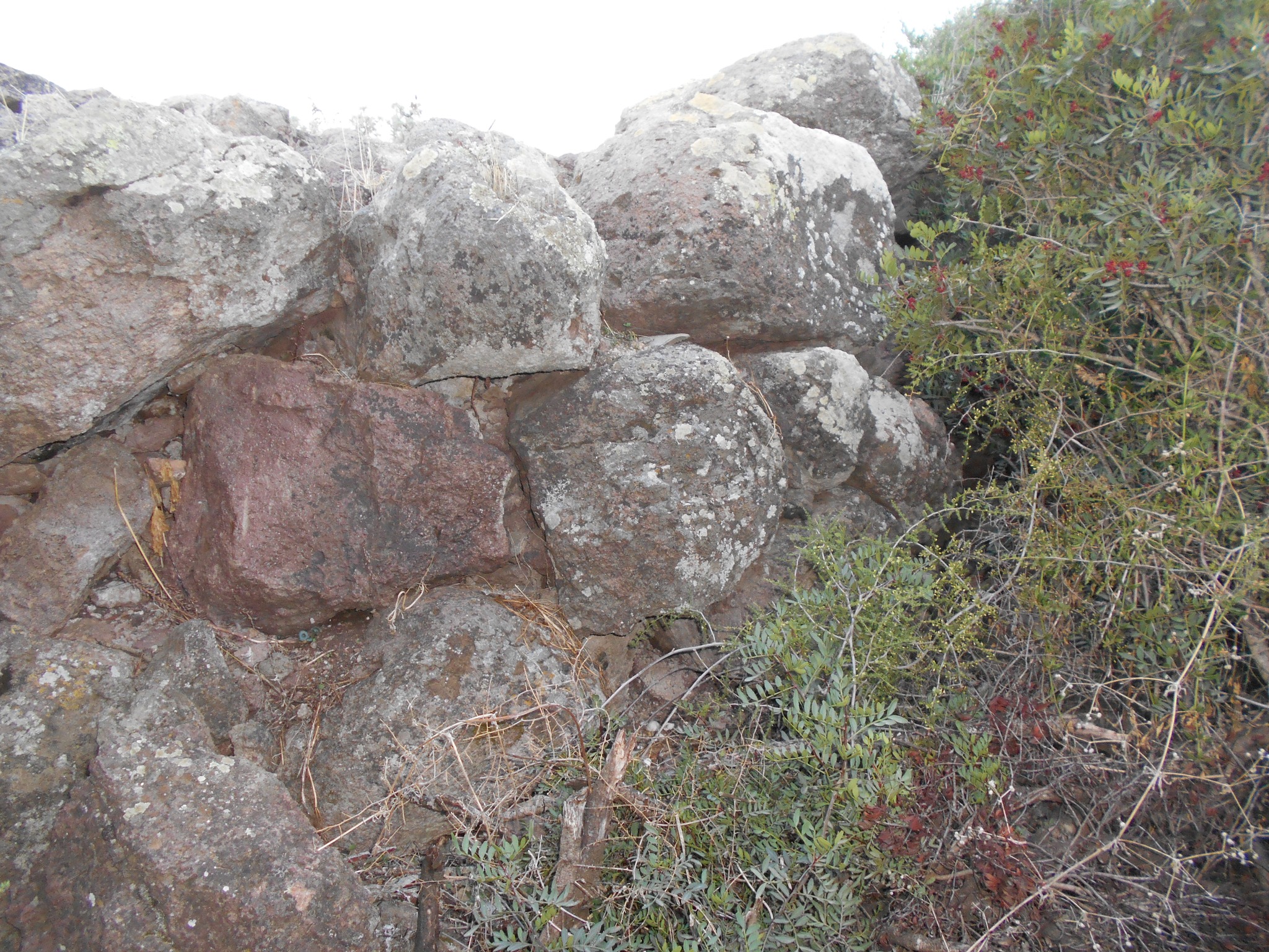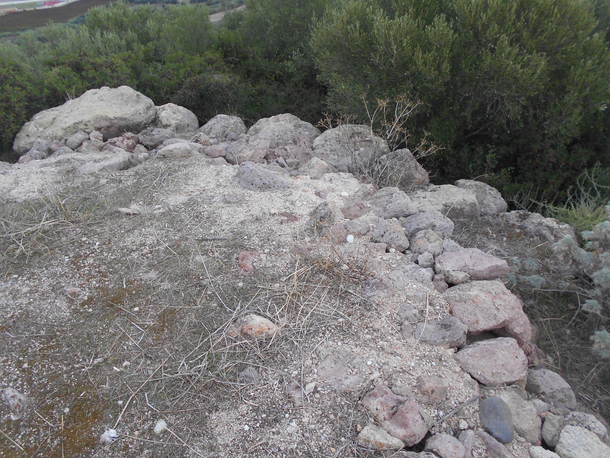 A prima vista pare un monotorre, ma potrebbe essere semplicemente la sommità di un vasto complesso nuragico sepolto dentro una collinetta formatasi nei millenni. E’ un pò rovinato quel che si vede: alcuni filari, una cavità che può essere la sommità della torre centrale o la fine del vano scala.