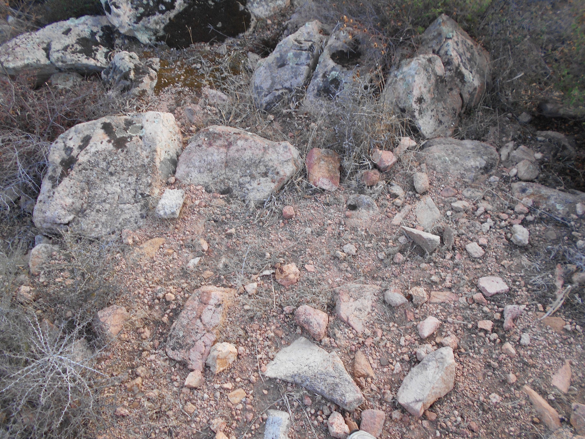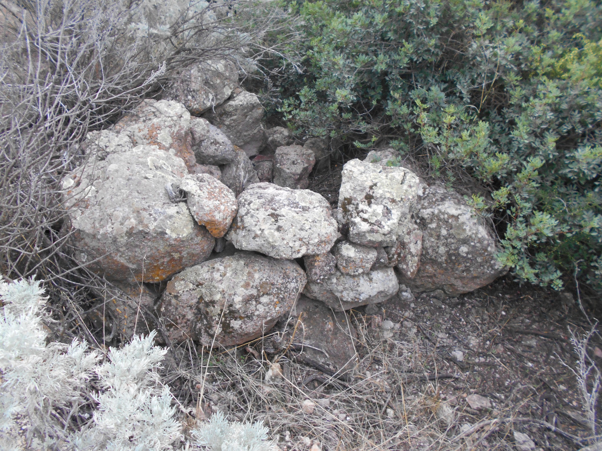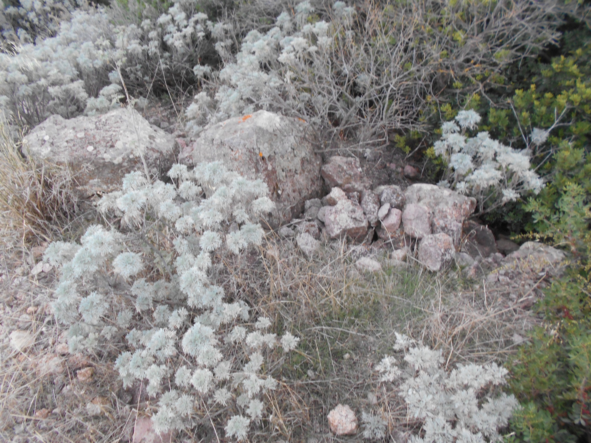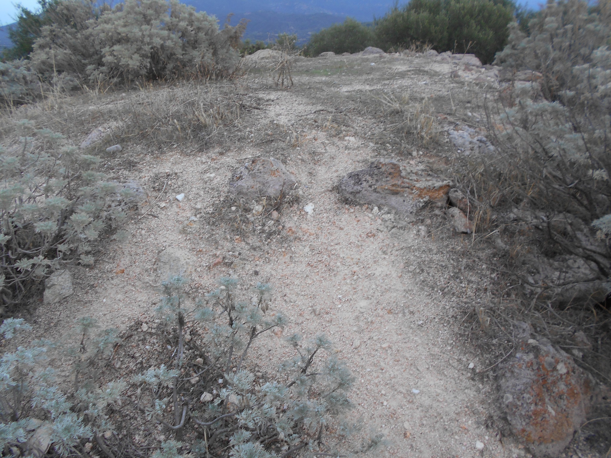 A prima vista pare un monotorre, ma potrebbe essere semplicemente la sommità di un vasto complesso nuragico sepolto dentro una collinetta formatasi nei millenni. E’ un pò rovinato quel che si vede: alcuni filari, una cavità che può essere la sommità della torre centrale o la fine del vano scala.