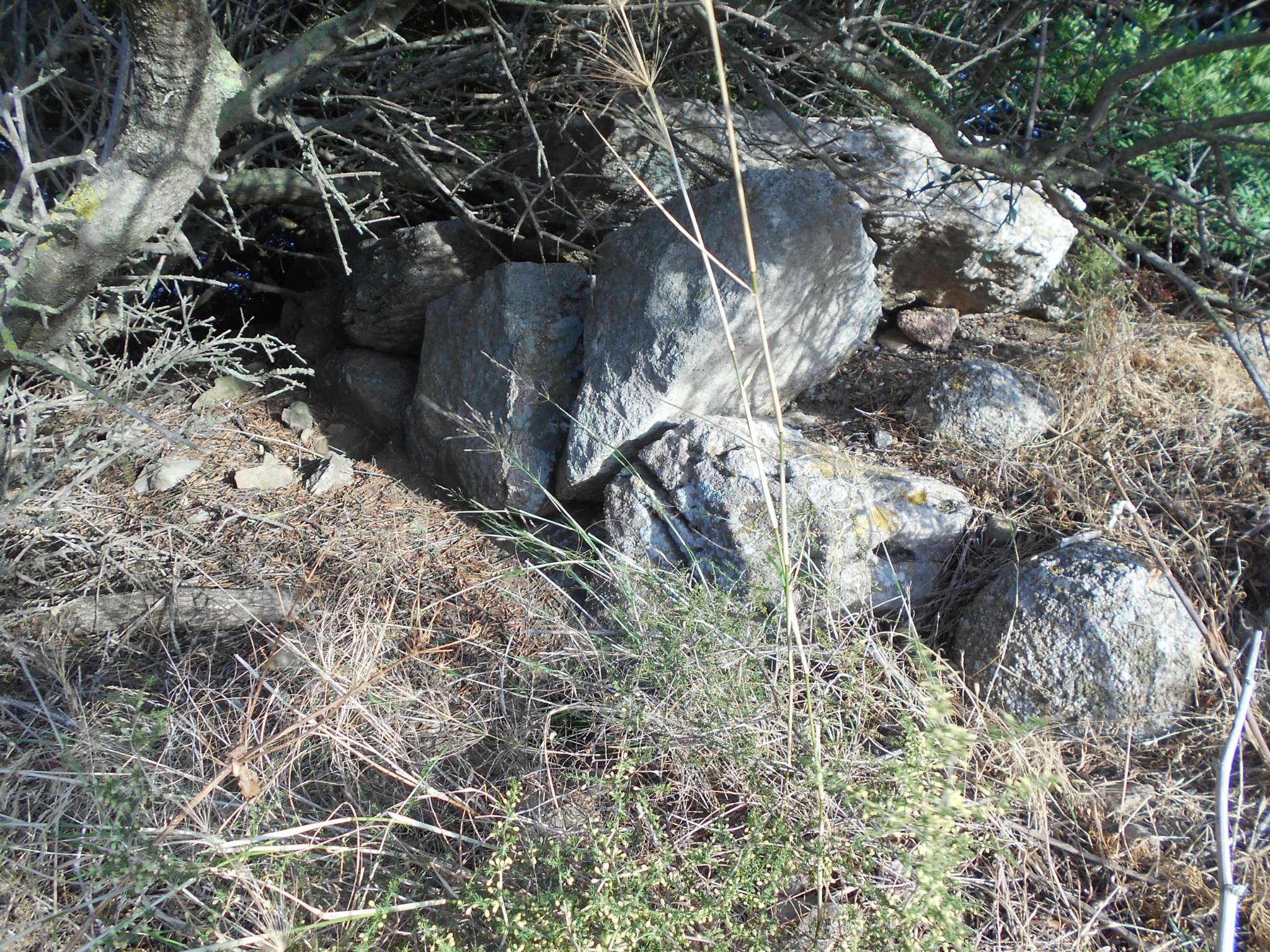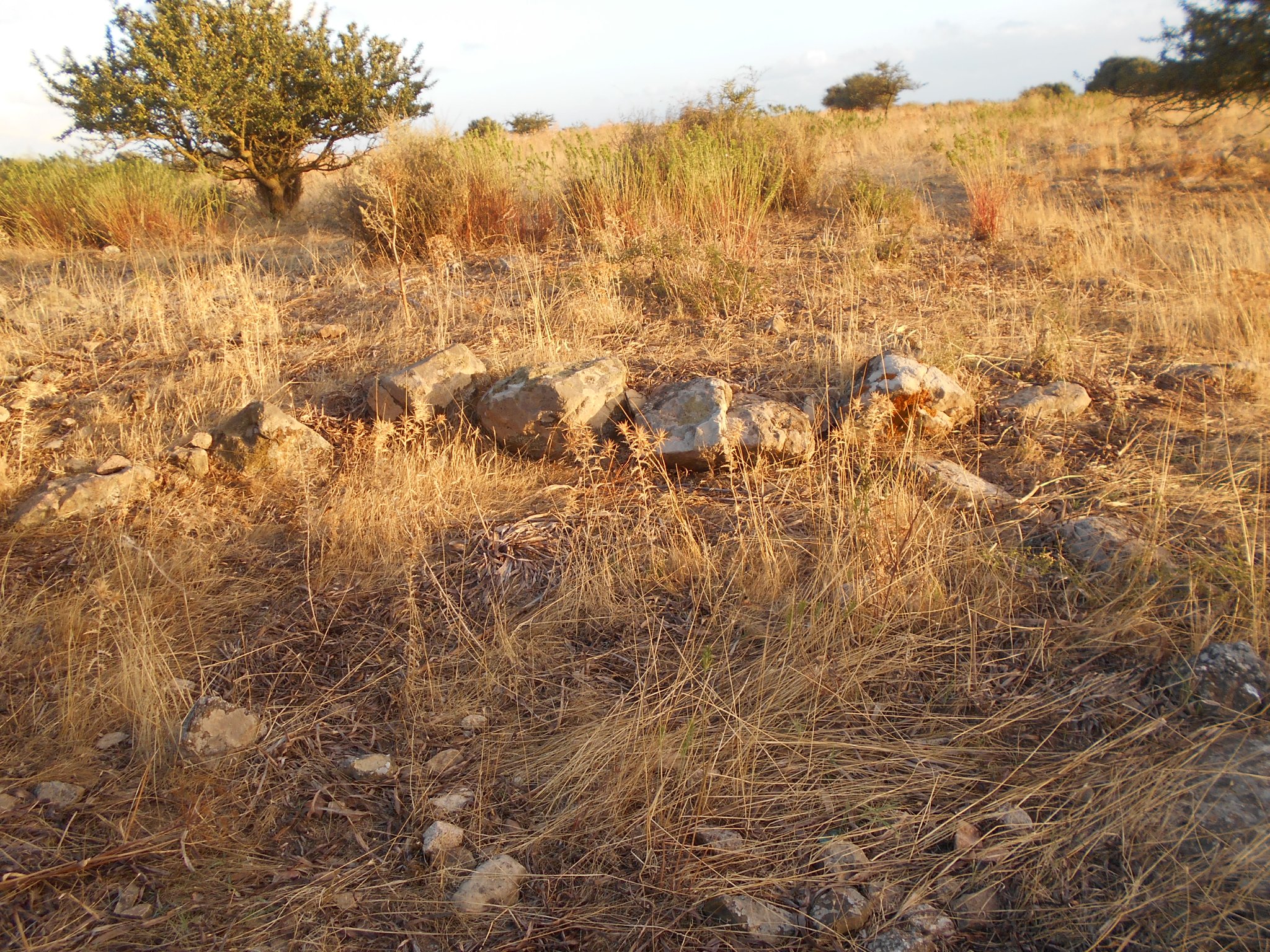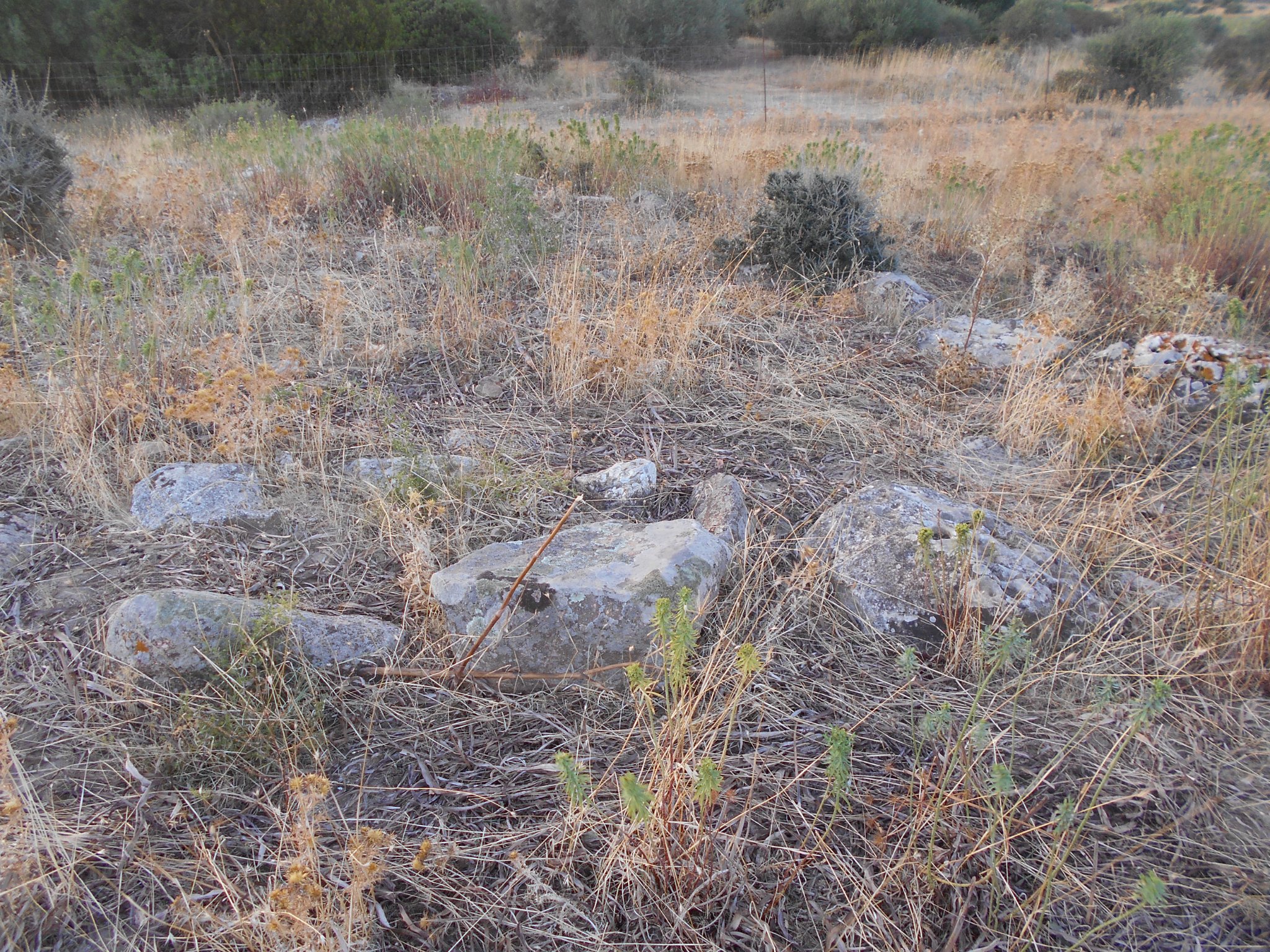 Probabile insediamento situato a 100 metri a sud ovest del nuraghe Santu Pedru, a Pimentel. E’ costituito da diversi filari circolari e lineari sporgenti dal terreno, fatti di grossi conci calcarei.