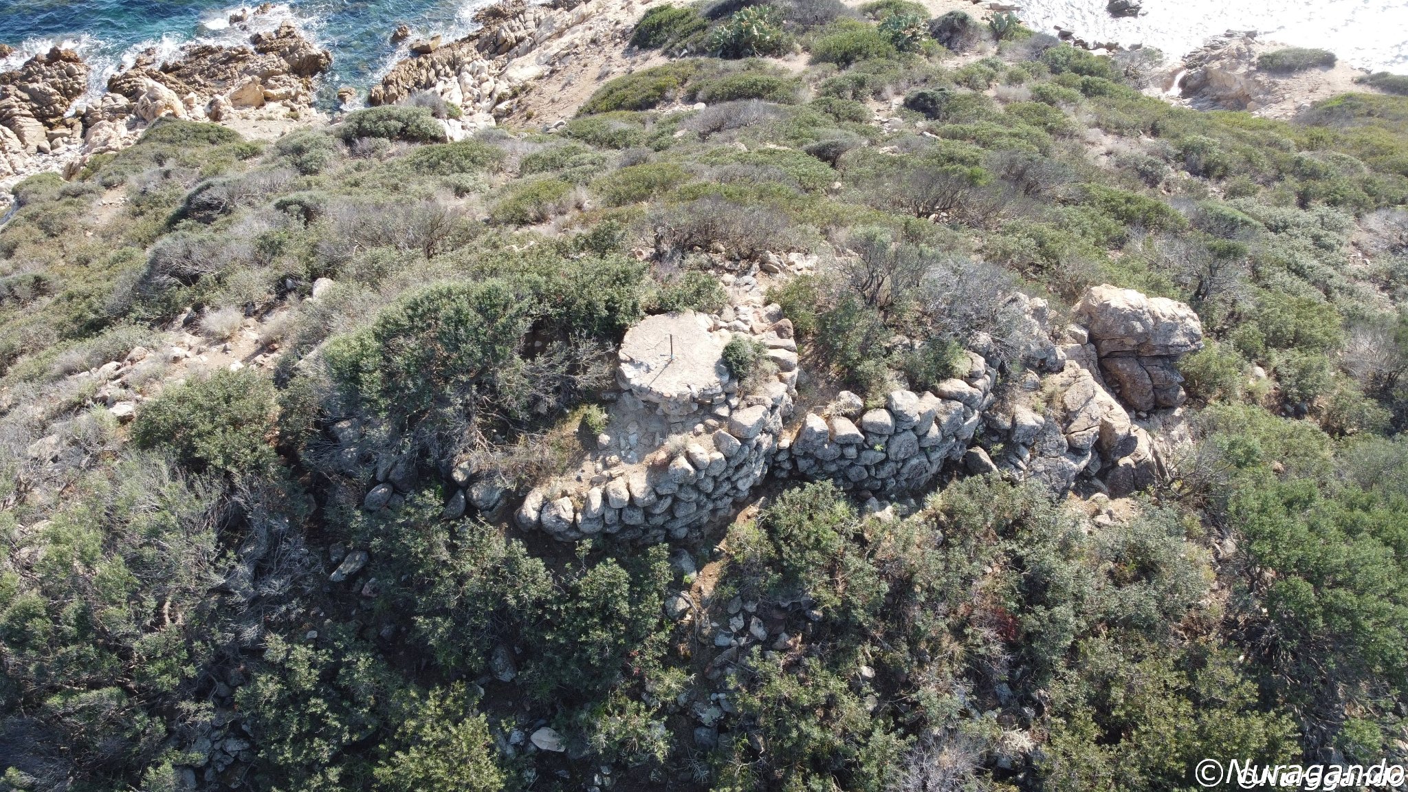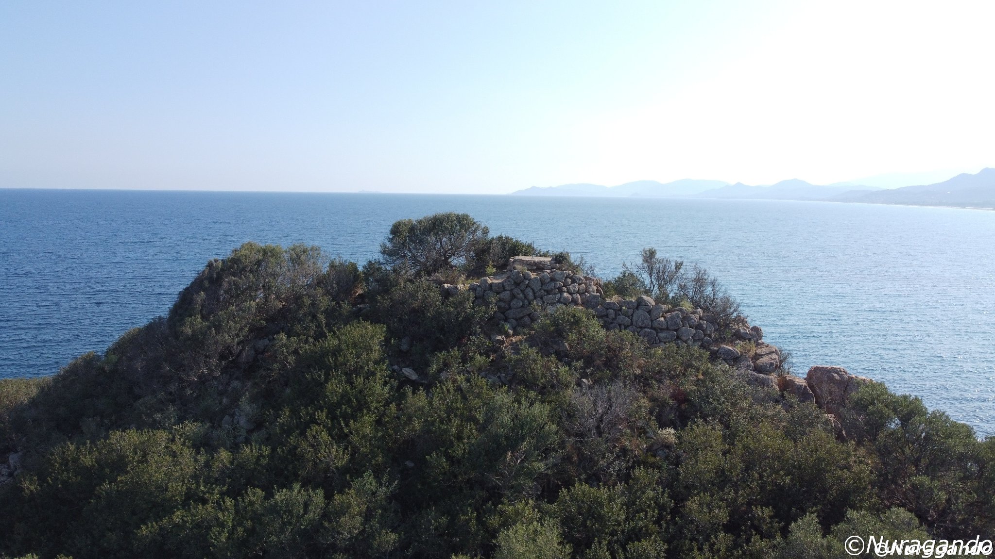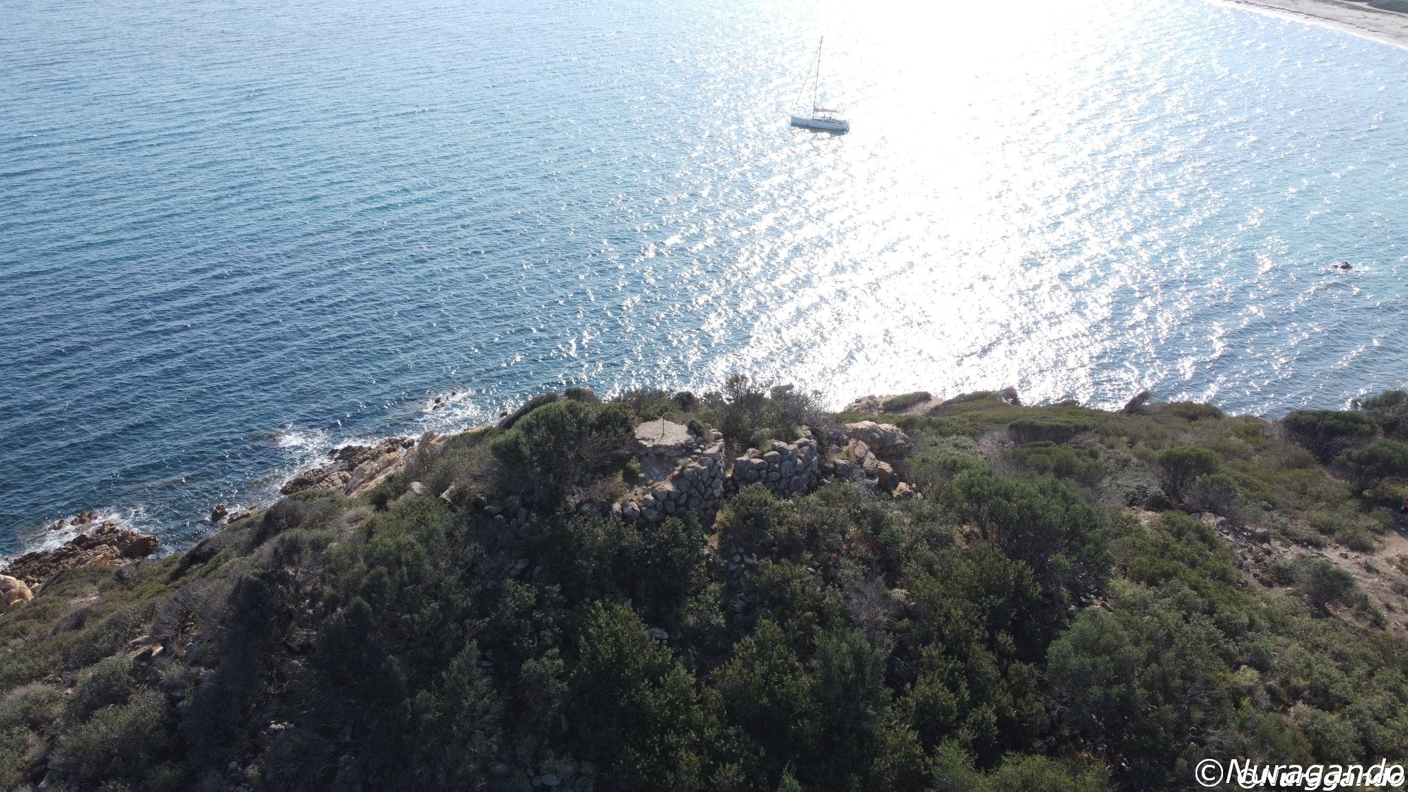Nuraghe posto sull’approdo doppio e sicuro di Porto Pirastru. Attualmente restano le mura e un battuto di cemento di una installazione recente.