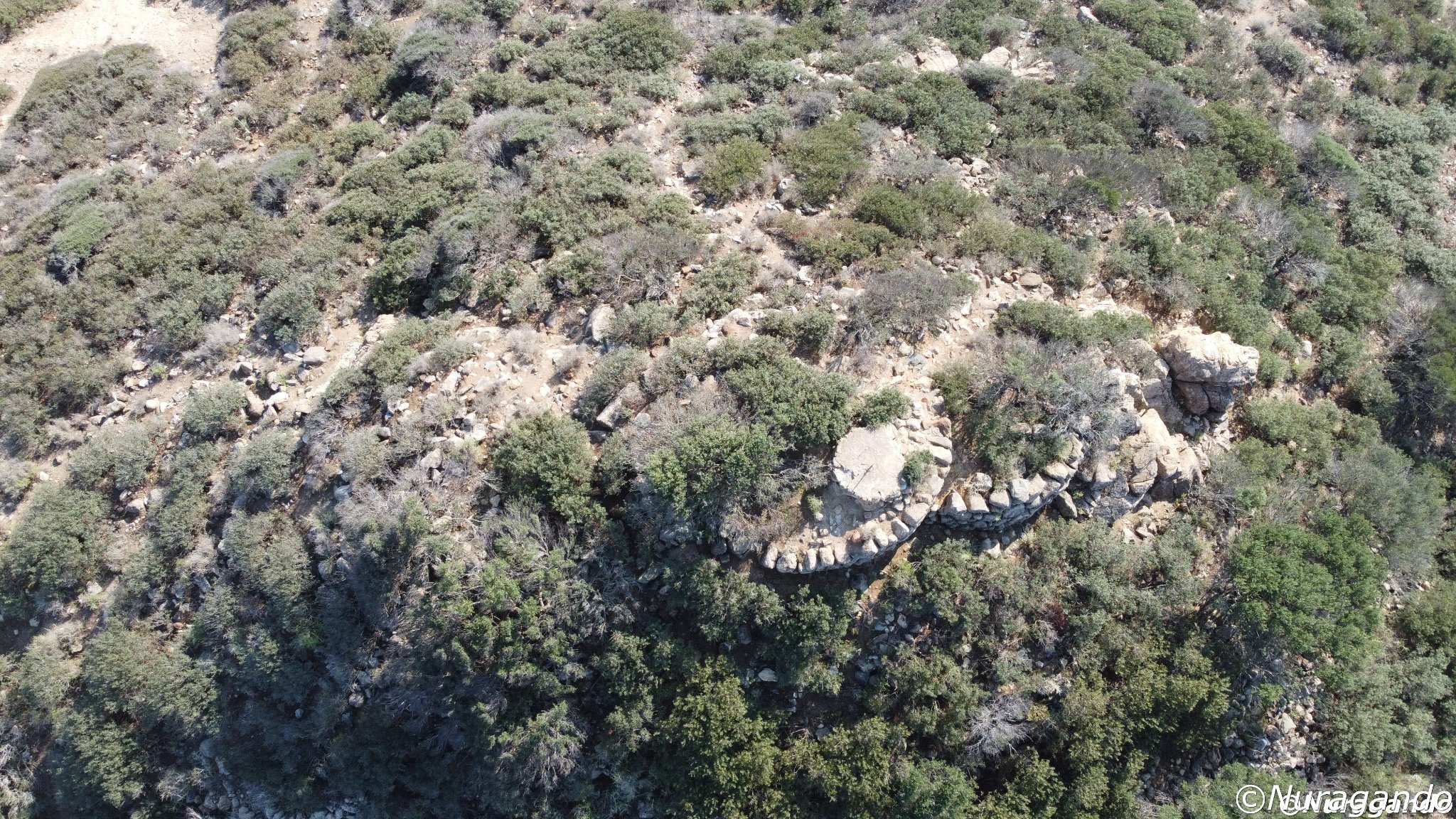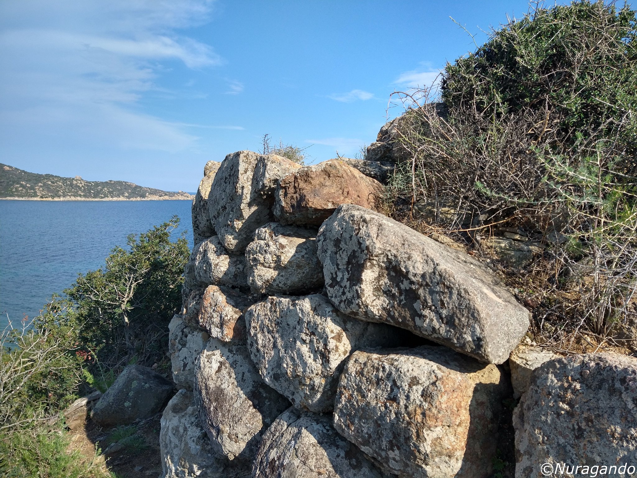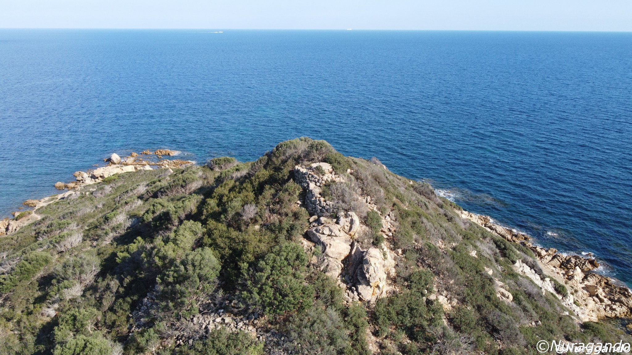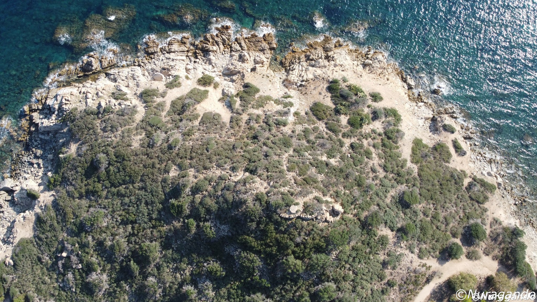 Nuraghe posto sull’approdo doppio e sicuro di Porto Pirastru. Attualmente restano le mura e un battuto di cemento di una installazione recente.